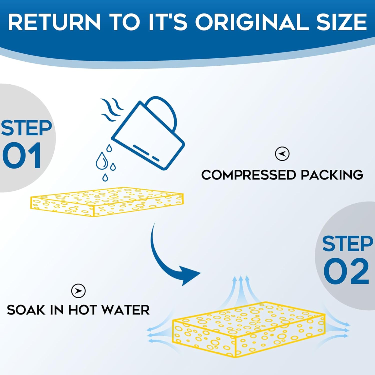 • VACUUM-COMPRESSED PACKING:Our kitchen sponges pack have been vacuum-compressed,Please open it and soak it in hot water for a while, it will return to its original state.If you don’t like this product, please contact us to receive a refund.