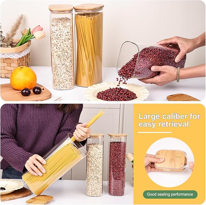 • Elegant and Practical Design: Elevate your kitchen organization with the sleek, square design of our Glass Food Storage Jars. These jars aren't just functional – they're also a stylish addition to your countertop or pantry. The clear glass allows you to easily identify the contents, making meal prep and cooking a breeze.