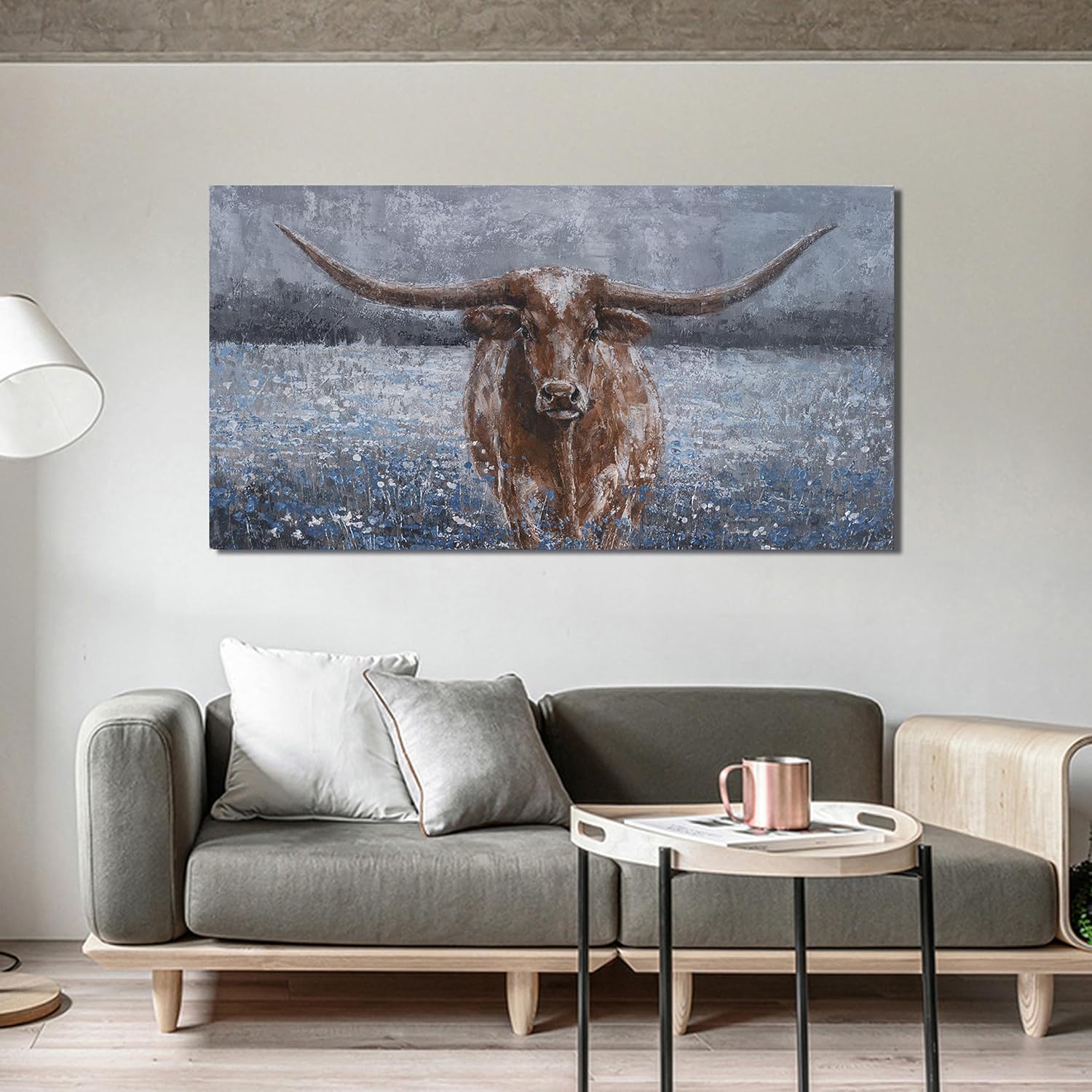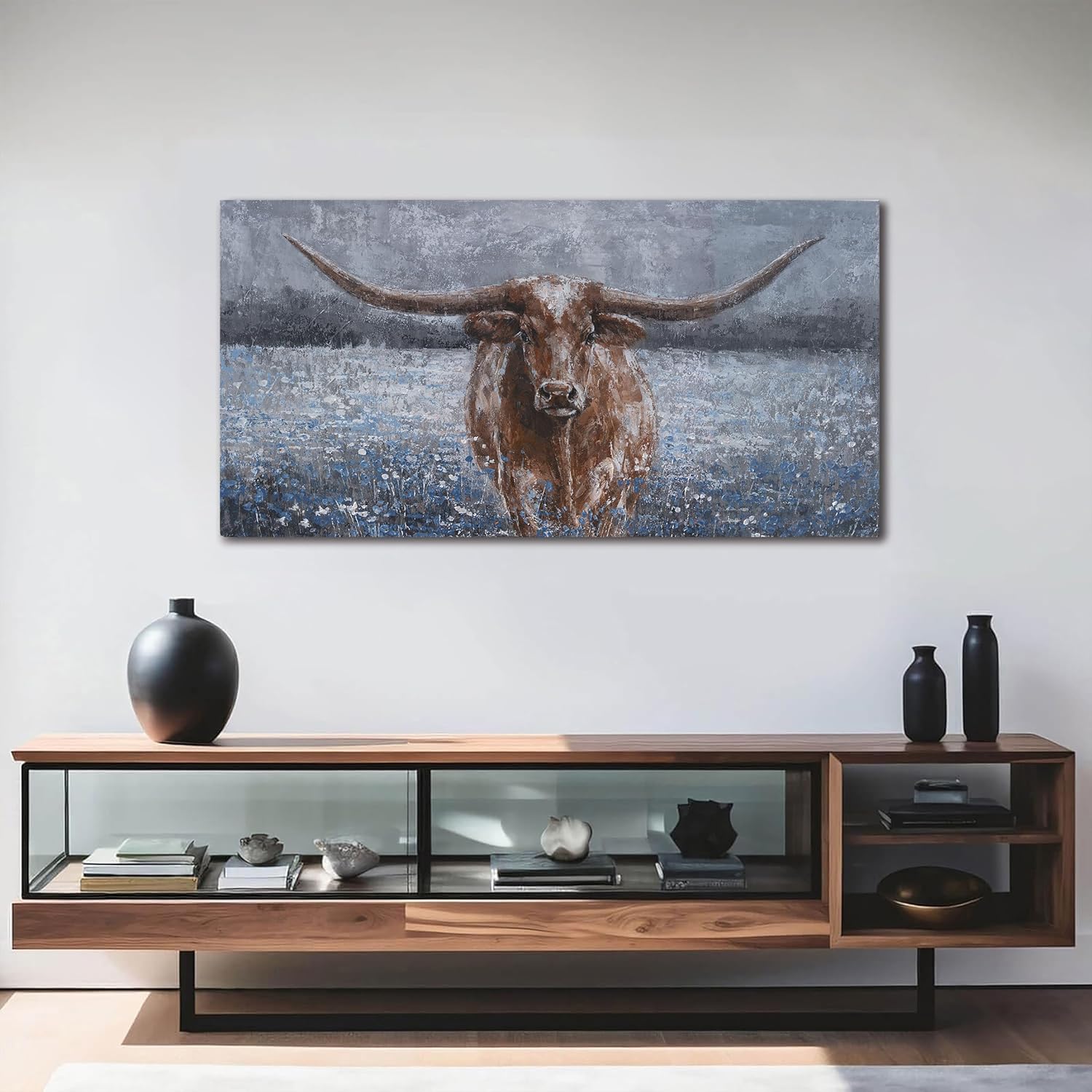 KUPTEU Canvas Wall Art Decor Vintage Wall Art For Living Room Highland Cow Wall Art Decorations Canvas Art Wall Decor Modern Blue Wall Art Prints Artwork for Walls Bedroom Home Decor 20" x 40"