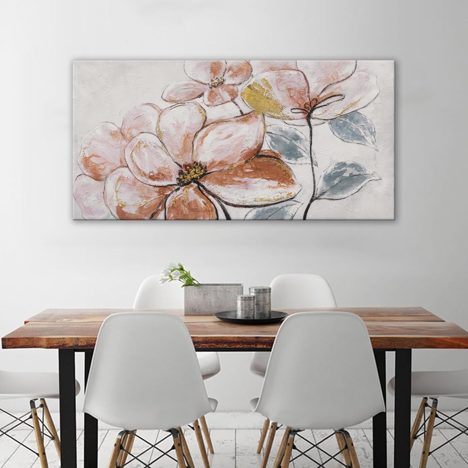 YISXINOAG Wall Art Living Room Decor Brown Pink Flower White Wall Art Decor Modern Canvas Art Wall Decor Home Wall Decor Suitable For Bedroom Apartment Office Wall Decor Can Be Hung 24"X48"