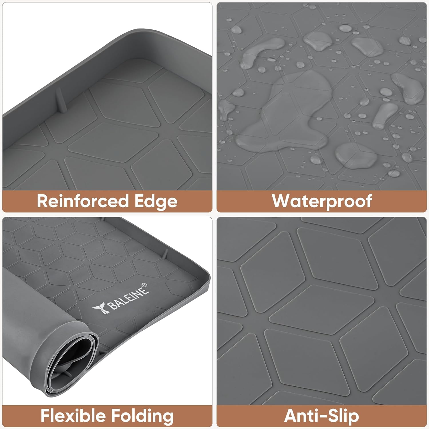 BALEINE 28''×22'' Under Sink Mat, Waterproof Food Grade Silicone Undersink Mat, Cabinet Shelf Drip Tray, Under Sink Liner for Kitchen, Bathroom (Grey)