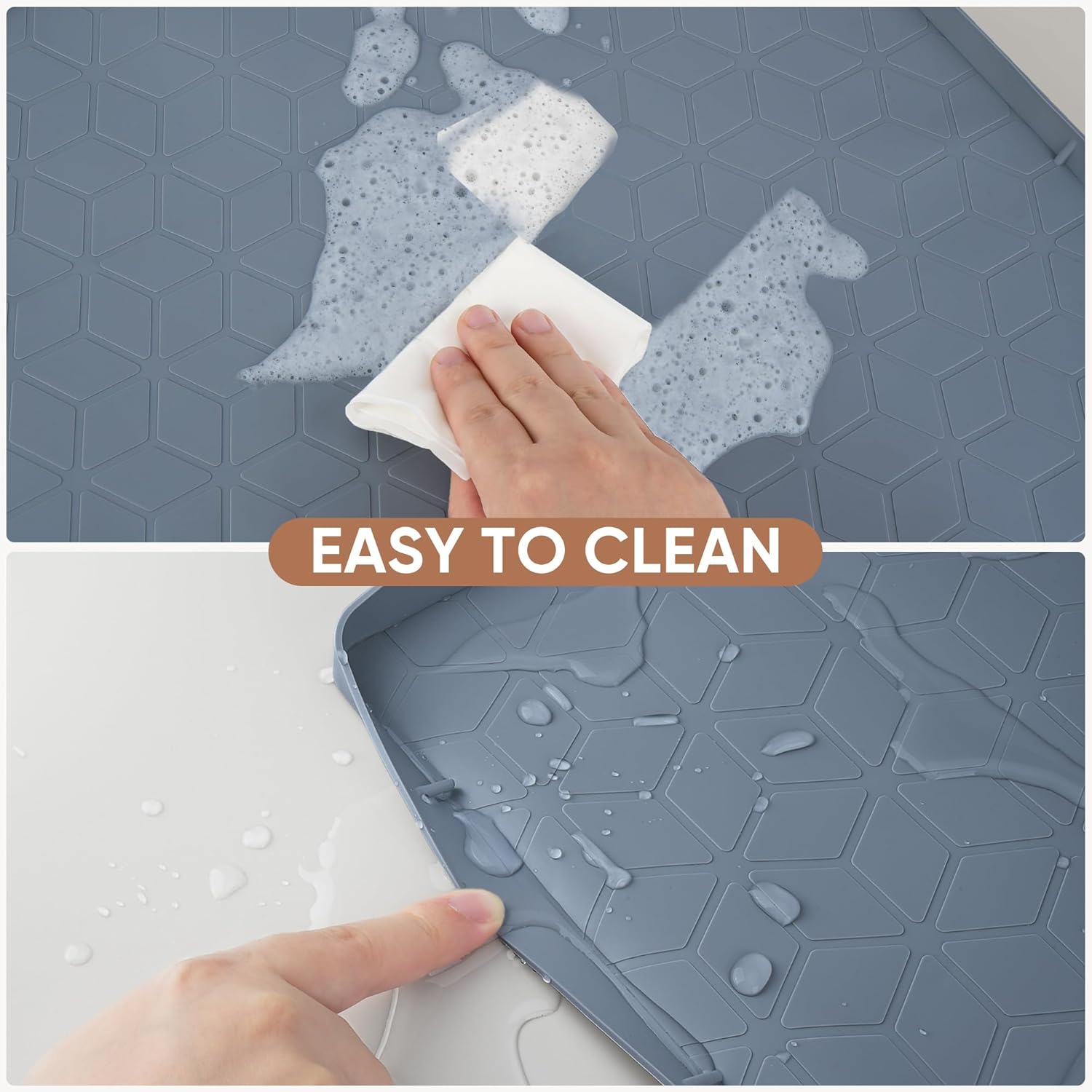 • Home Essentials: This under kitchen sink mat is 100% food-grade silicone, water and oil-resistant, non-toxic, and odorless; Multiple sizes are available; 0.8 inch rim better prevents liquids from spilling and protects cabinets