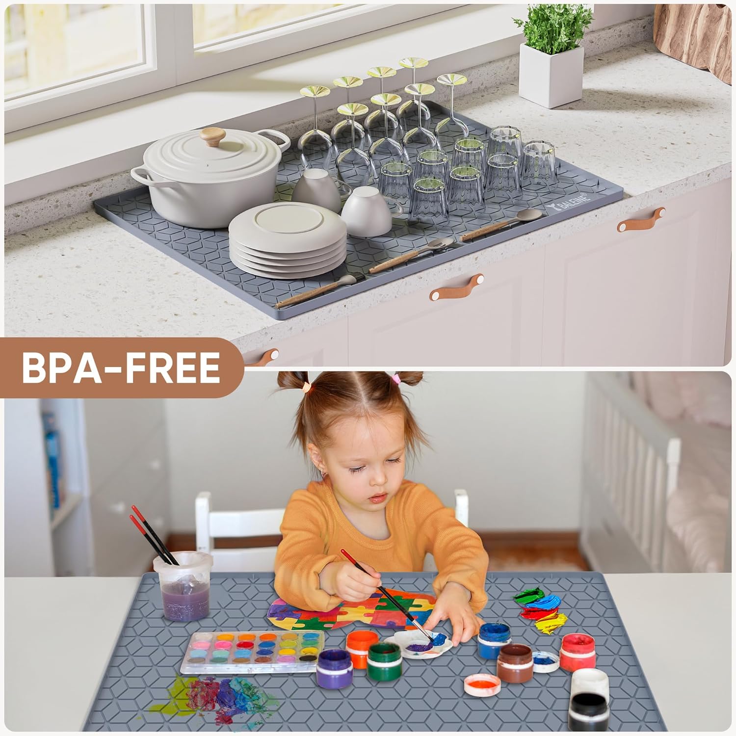 • Safety and Versatile: This under the sink mat waterproof is BPA-free, and odorless; The undersink waterproof mat is wear-resistant, an ideal choice not only for under sink liner but also as a pet mat, heat insulation pad, placemats, flowerpot mat, dish drying mat
