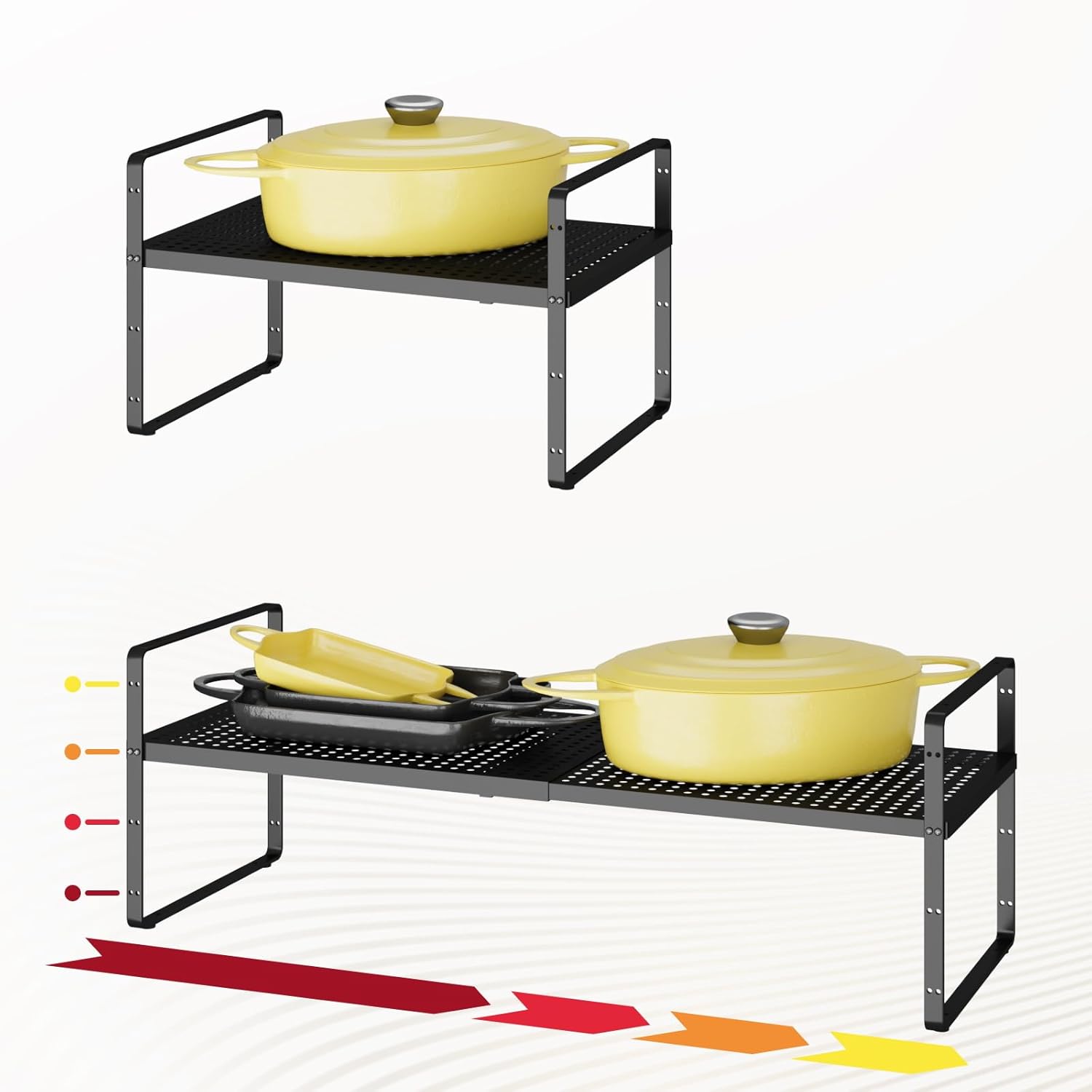 • Wide Range of Use:Cabinet shelf organizers can be stacked and used, one or more combined together. They can be placed in cabinets, food cupboards, on kitchen countertops or under the sink.