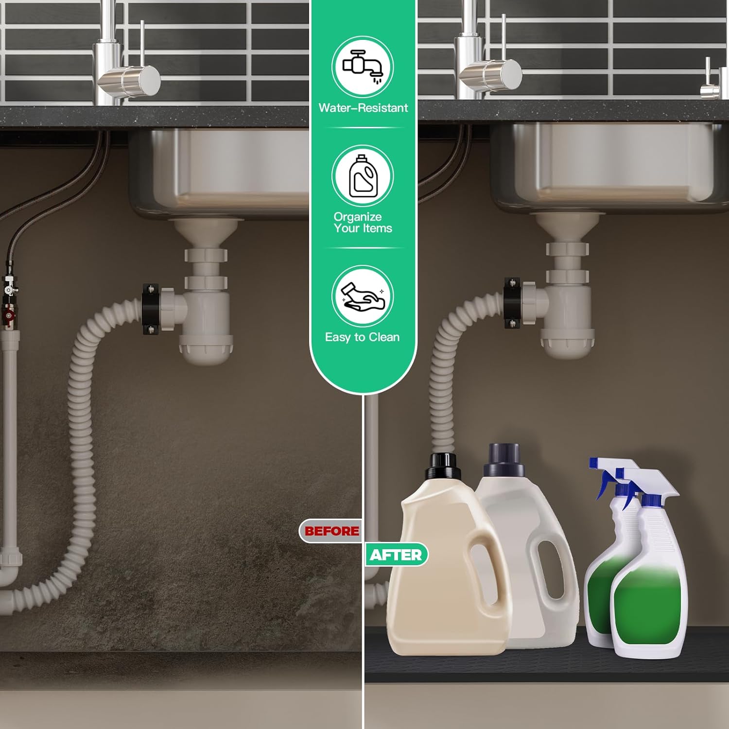 • Compatible Sizes: The TRZZ under sink mat measures 31" x 22" with a 0.6-inch depth to effectively handle water from cabinet leaks; not suitable for cabinets smaller than 31" x 22"