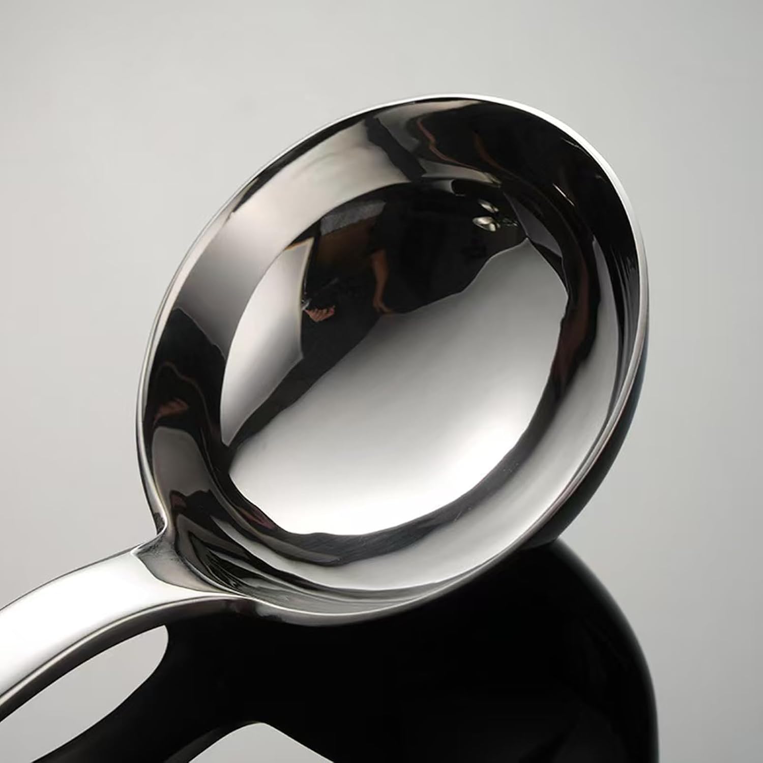 • Multi-Function: Big soup ladle spoon works perfect for soup, ramen, rice noodle, wonton, ladling gravy, soup, broth, consomme, sauces, salad dressings, etc