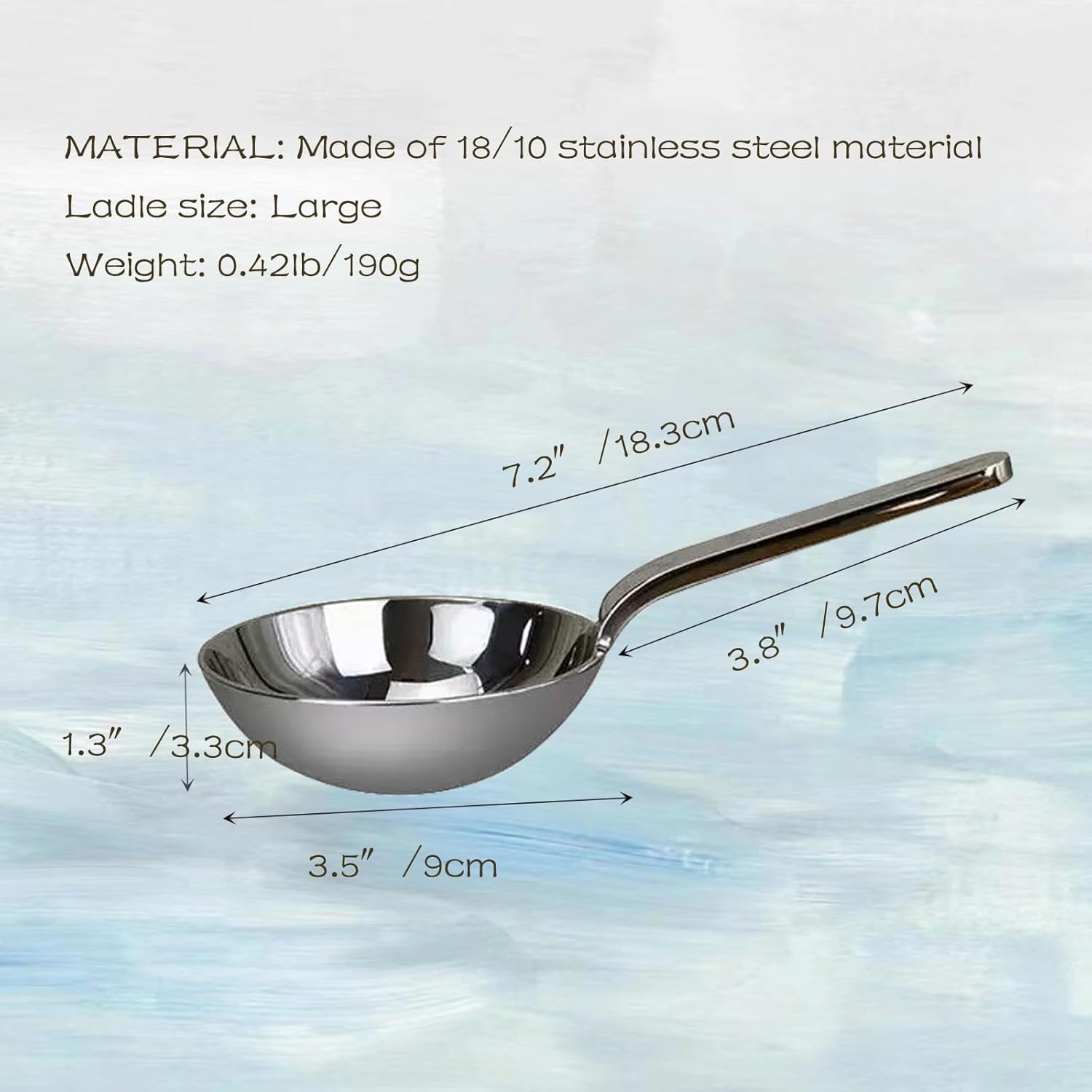 • Size: Big ladle spoon Capacity about:100 ml/3.4 oz; Length: 7.1 inch/18.2 cm; Head width: 3.54 inch/9 cm; Weight: 0.418 lb/190 g. Due to manual measurement. Please allow measurement error, Thank you