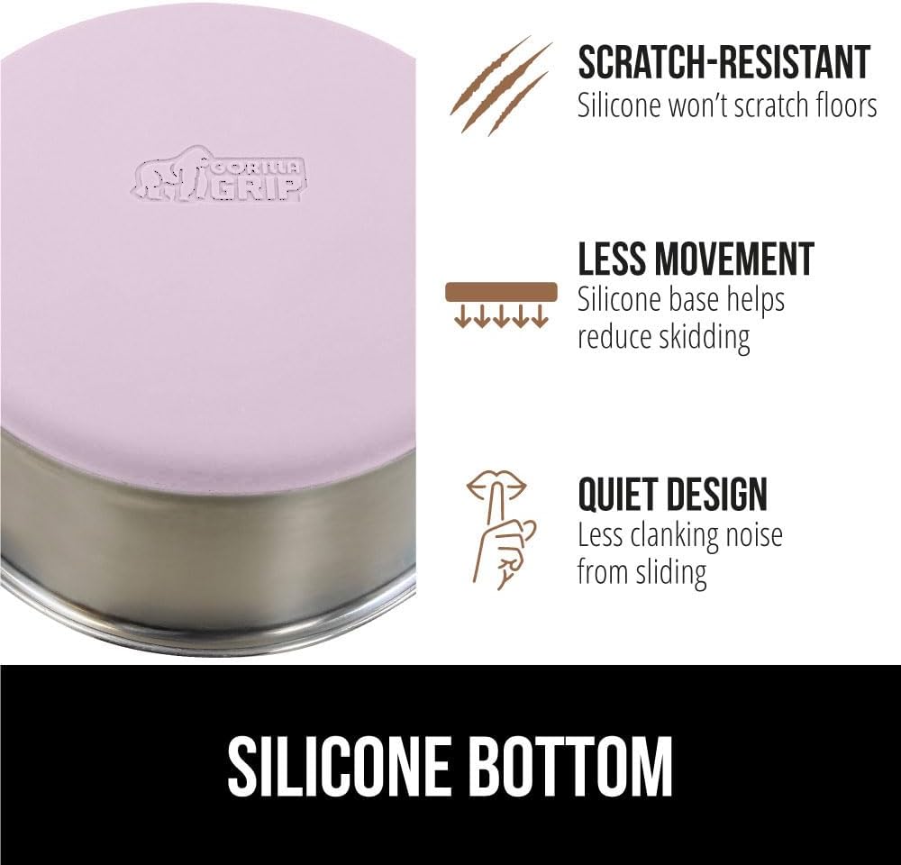 • SILICONE BOTTOM: the Gorilla Grip bowl is constructed from durable silicone that helps keep the bowl steady and won’t scratch your floors; while some over eager eaters may still be able to slide the bowls, the silicone will help prevent much movement; plus, it reduces the noise from clanking and sliding across wood, tile, and more