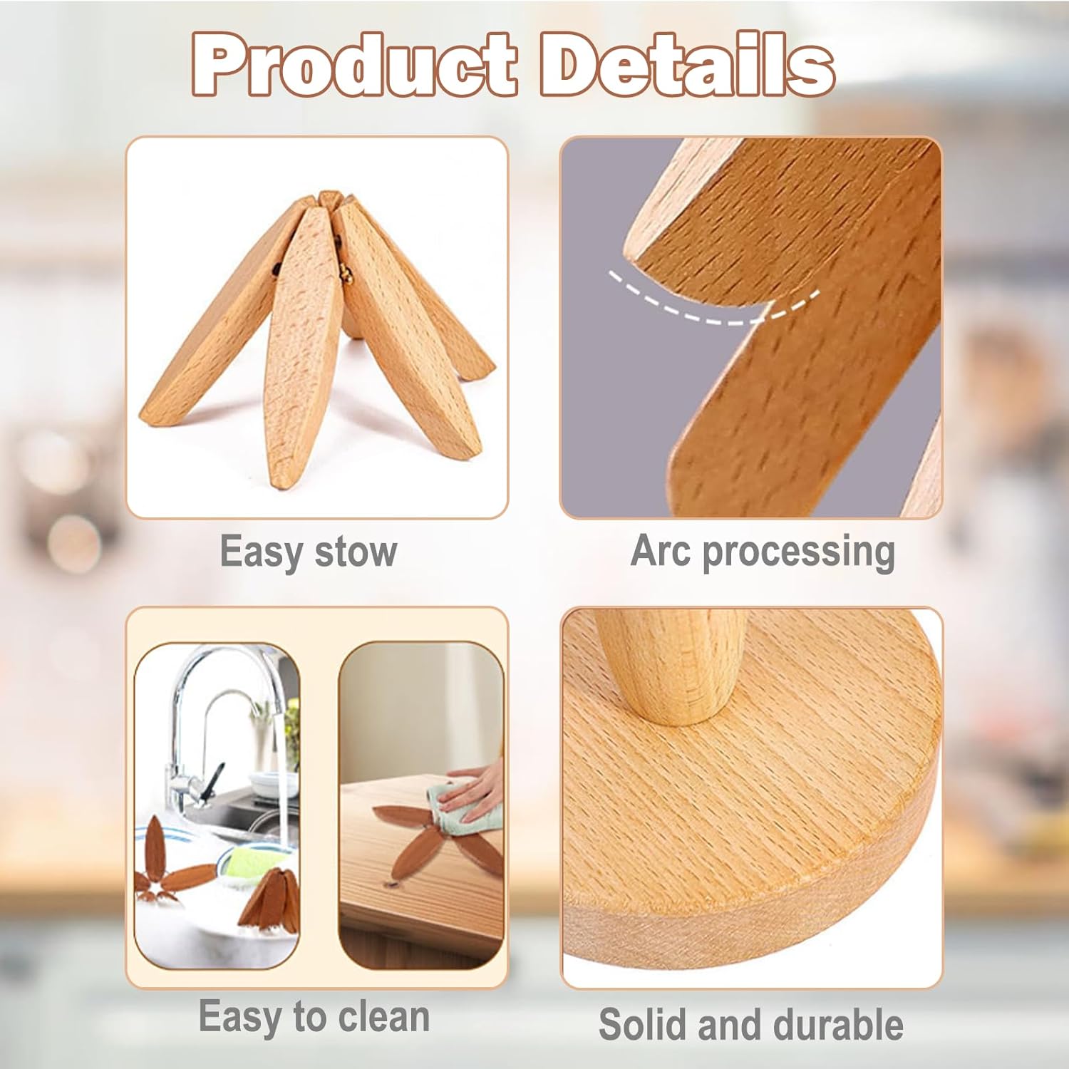 • Tree Shape Trivet Set: Tree trivet is made of wood and include 4 pieces of trivet + 1 stand to prevent damage to countertops and tabletops from hot pots and dishes