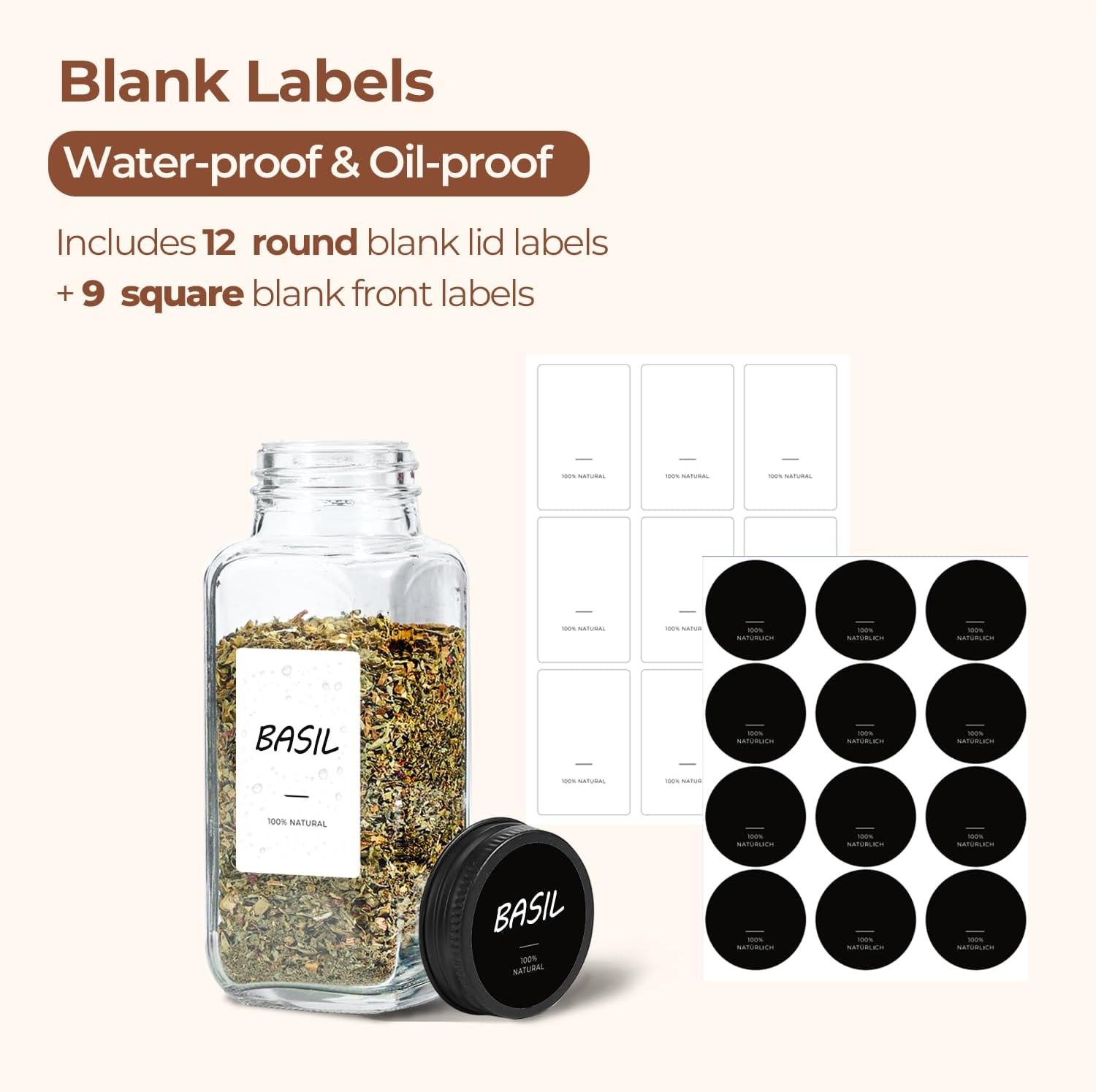 • Customizable Labeling: The set includes 93 labels in four distinct styles: black round, white square, and blank versions of each. Whether pre-labeled for quick identification or blank for your unique blends, organize your spices your way. Personalize your pantry with flair and function.