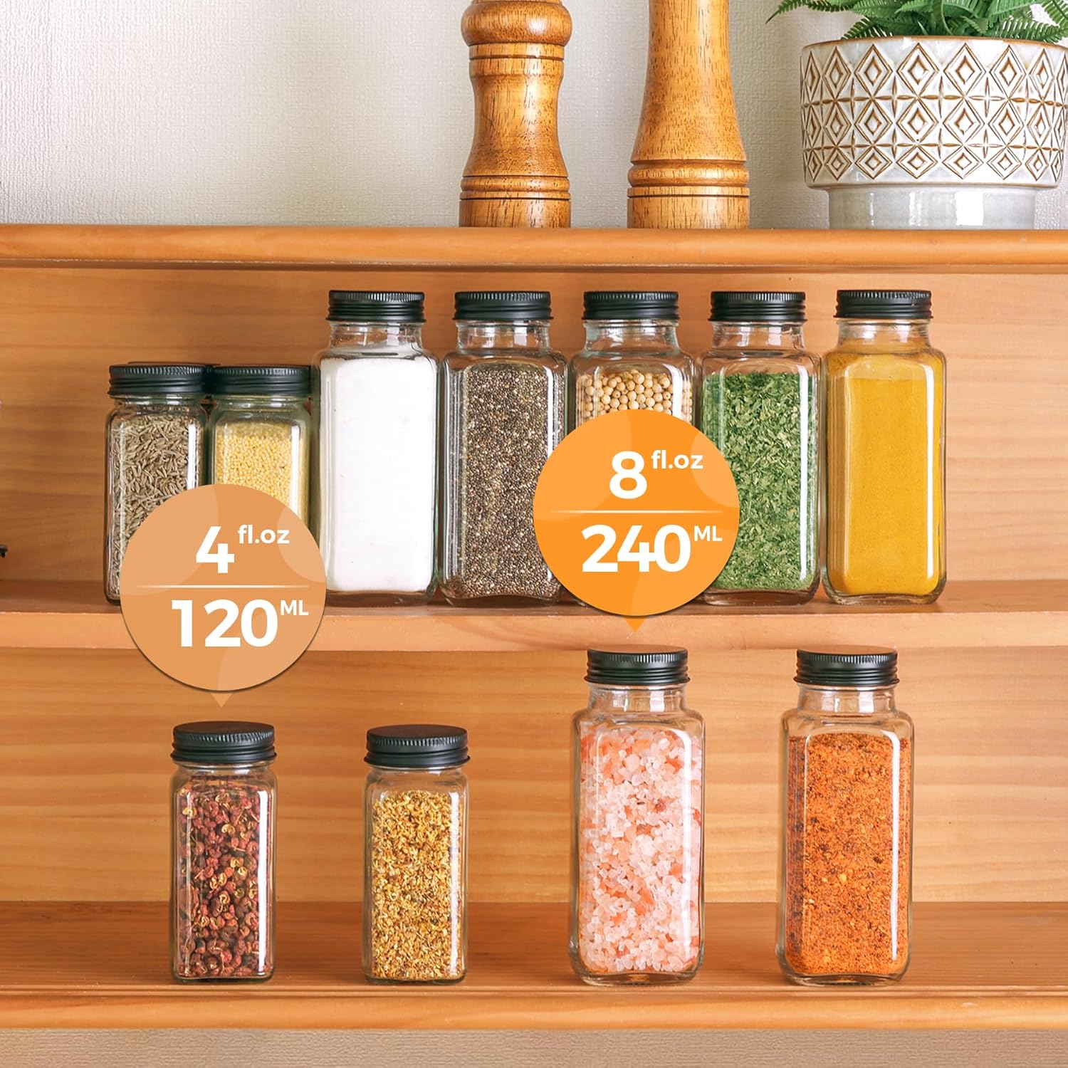• Shaker Tops for Easy Seasoning: Flavor your dishes with the perfect pinch! Our 8 fl.oz spice jars feature shaker tops, ensuring you can effortlessly dispense the right amount of seasoning.