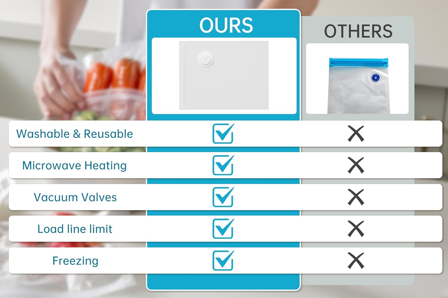 • ALL-NEW UPGRADE: Ditch outdated vacuum sealer bags! Our reusable, leak-proof bags offer enhanced airtight performance and no fill-line limits, giving you more storage in the same size. A smarter, more efficient way to handle your food storage needs