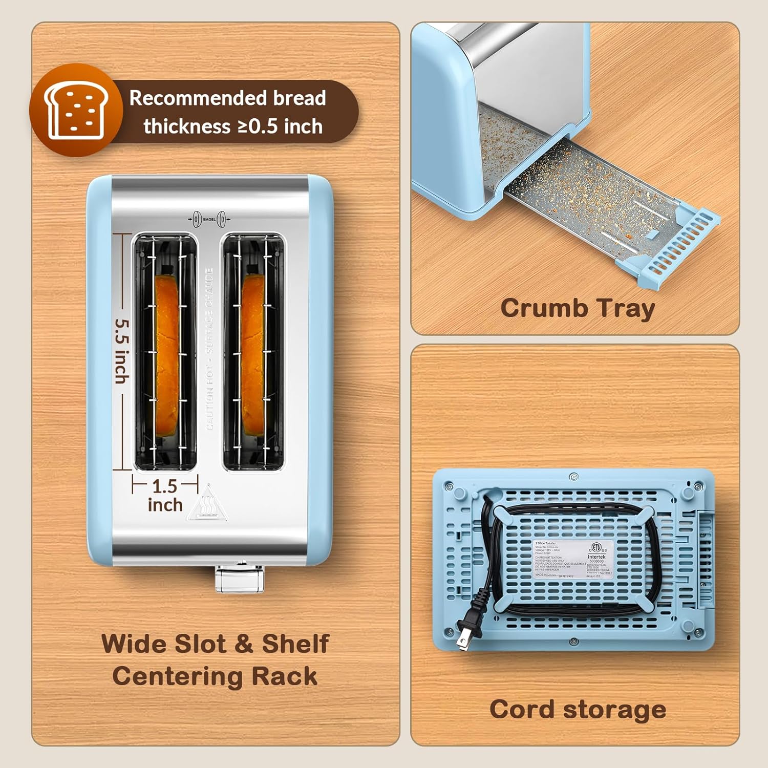 • 【Easy to Clean and Maintain】: The non-stick, food-grade stainless steel slots and a removable crumb tray make this 2-slice toaster easy to clean. Keep your kitchen mess-free with minimal effort and enjoy a hassle-free toasting experience.