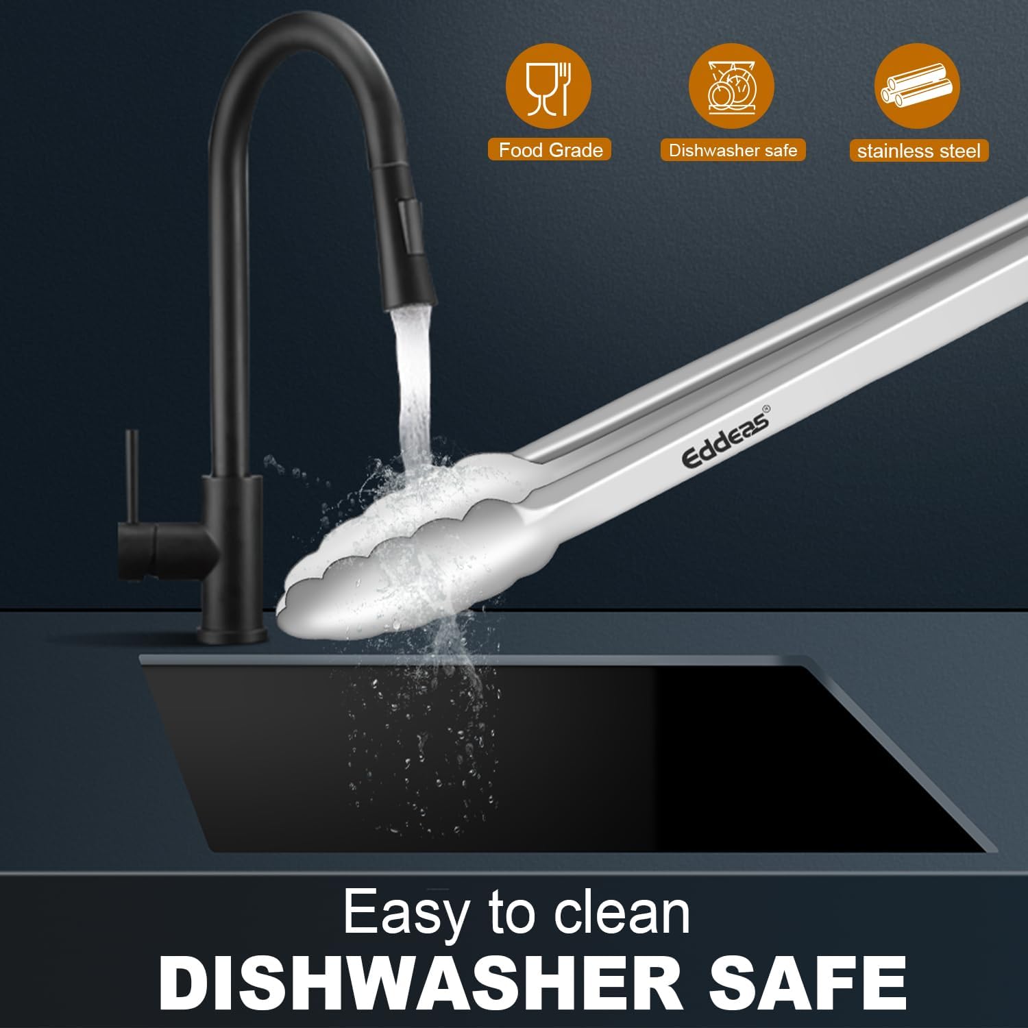 • FOOD GRADE STAINLESS STEEL - Eddeas kitchen tongs are made food-grade all stainless steel in one piece for enhanced robustness and heat resistance, rust resistance and easy handling. Tongs for cooking the overall light weight and ergonomic features are maintained.