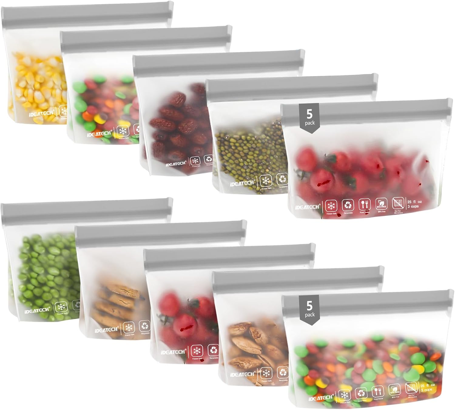 • Dishwasher Safe & Easy to Clean:IDEATECH reusable silicone bags is easy to clean and dry, Simply turn the reusable bag inside out and put it in the dishwasher for easy cleaning then put it on the top rack of the dishwasher and they’re good as new when they come out. But please skip high-temperature functions such as the dishwasher's drying to extend the lifespan of these food bags.