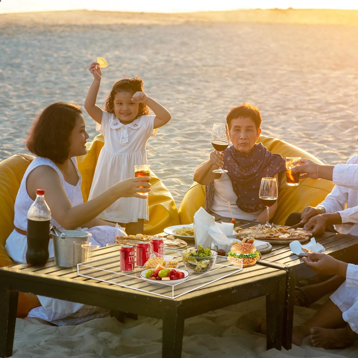 16×16 inches Oversized Clear Acrylic Ottoman Tray Extra Large Decorative Tray Spill-Proof Serving Trays with Handles King-Size Safe Edge Organizer for Coffee Table Countertop Breakfast