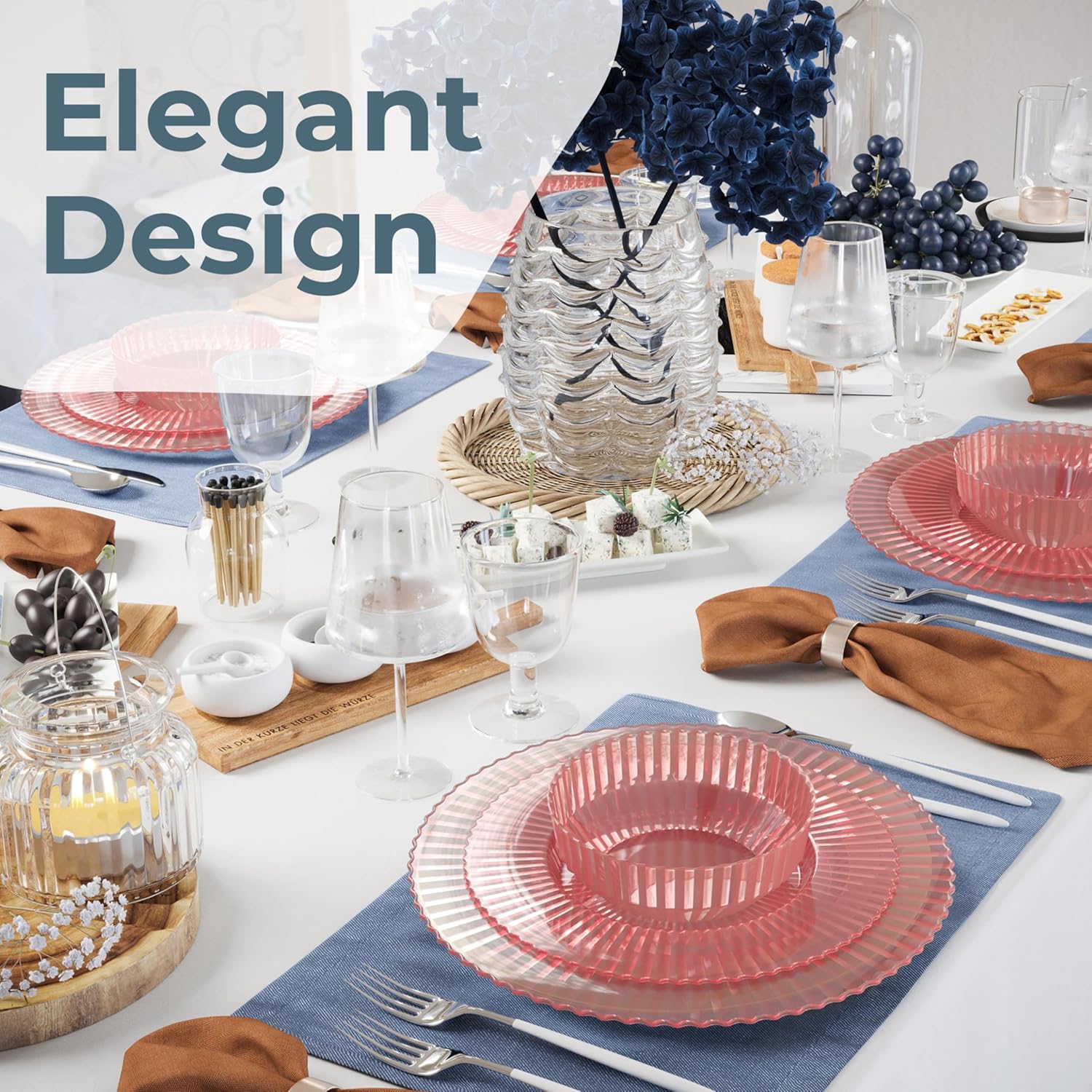 Exquisite Pink Plastic Bowls Disposable - 16 Oz - 20 Count - Disposable Soup Bowls - Great for Weddings Parties And Formal Occasions