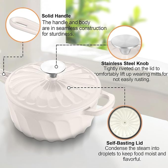 • Crafted from premium enameled cast iron, our enameled cast iron nonstick saucepan with lid avoids rusting, scratches, cuts and cracking for outstanding durability. The mini dutch oven saucepan for cooking pasta sauce will stand up to daily use and last for years to come. This covered enameled sauce pan is the perfect companion for creating flavorful and memorable meals