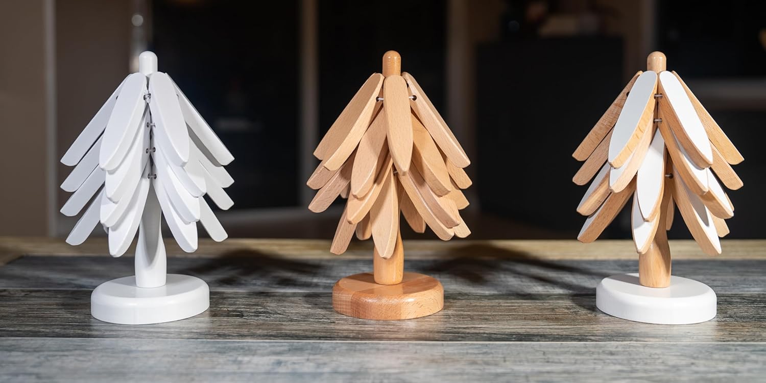 • Tree-Shaped Wooden Trivet Set – Made of high-quality wood, this set includes four trivets and a stand, protecting countertops and tabletops from heat damage while adding a decorative touch.