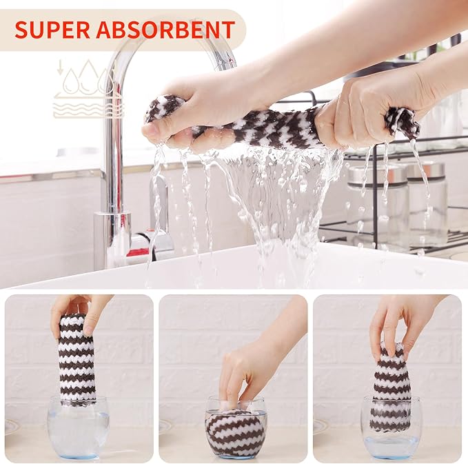 Homaxy Kitchen Towels(24 Pack, 10 x 20 inches), Ultra Soft and Absorbent Dish Towels, Reusable Fast Drying Microfiber Cleaning Cloth, Coral Velvet Wave Design No-lint, Brown