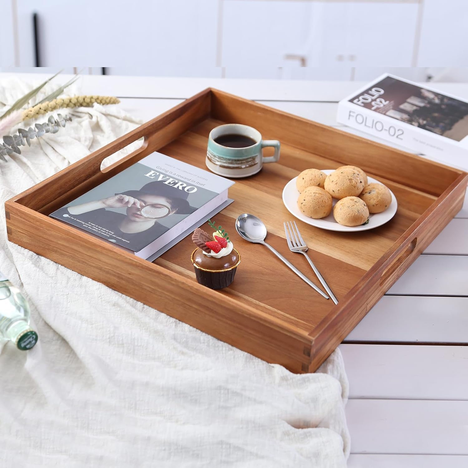 Ottoman Tray for for Living Room Extra Large Wooden Serving Trays for Ottoman 22-INCH Square Wood Trays with Handles Decorative Trays for Serving, Breakfast, Coffee Tea, Appetizers