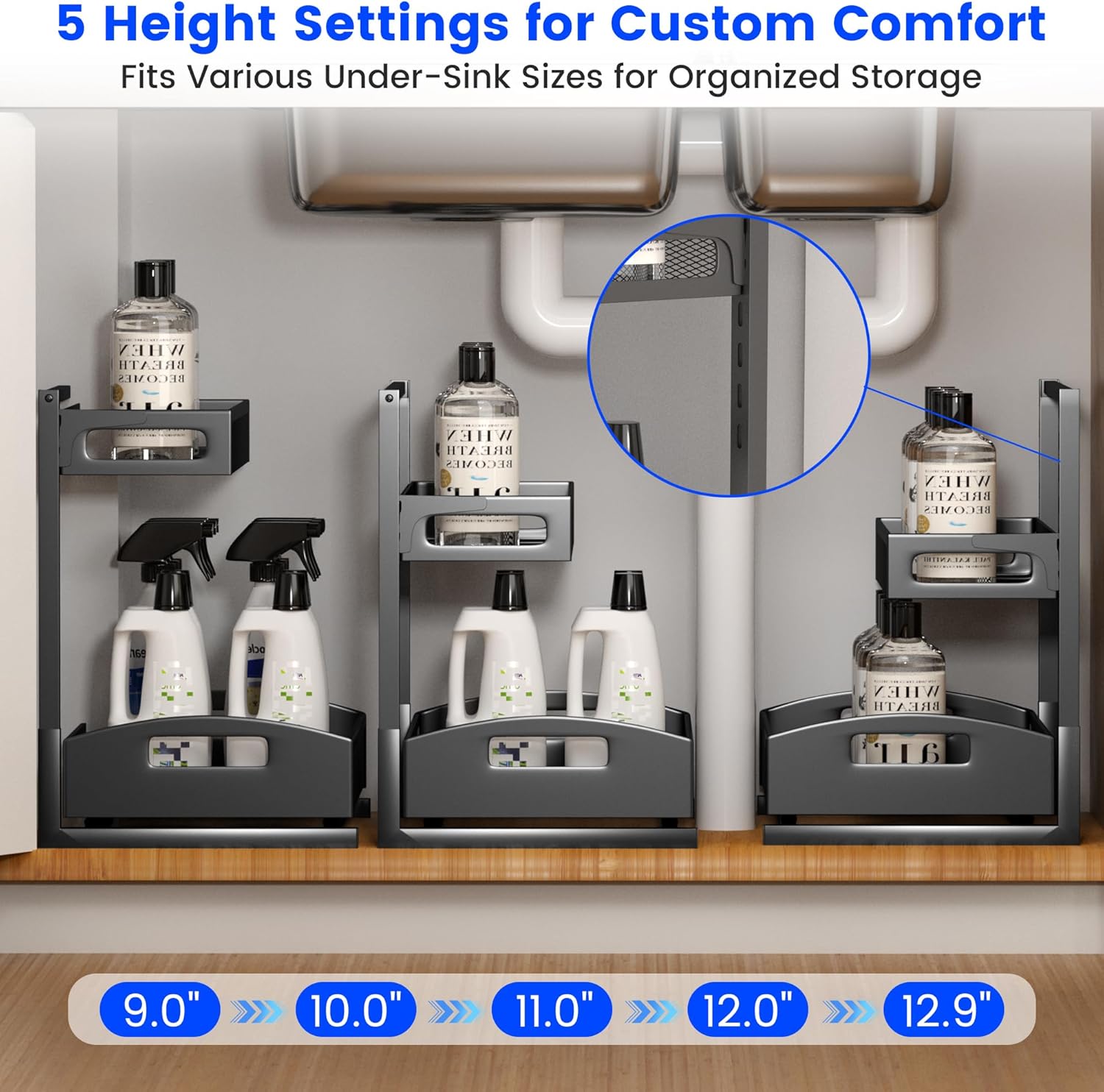 Under Sink Organizer,2 Pack Height Adjustable Under Sink Organizers and Storage, 2 Tier Under Sink Storage for Kitchen Bathroom Cabinet