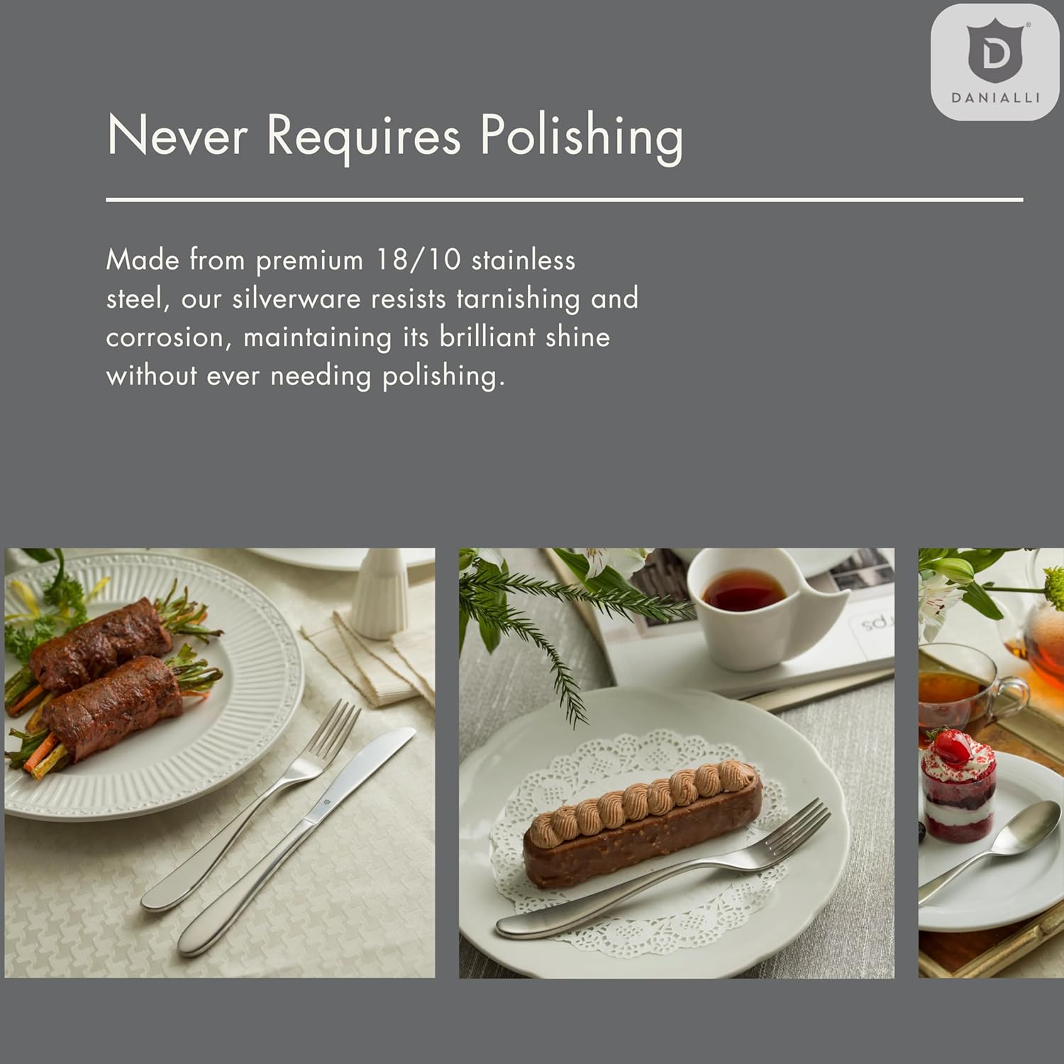 • The Heaviest in DANIALLI’s Collection – Crafted from solid 18/10 stainless steel, each piece offers a hefty, well-balanced grip you’ll notice the moment you pick it up.