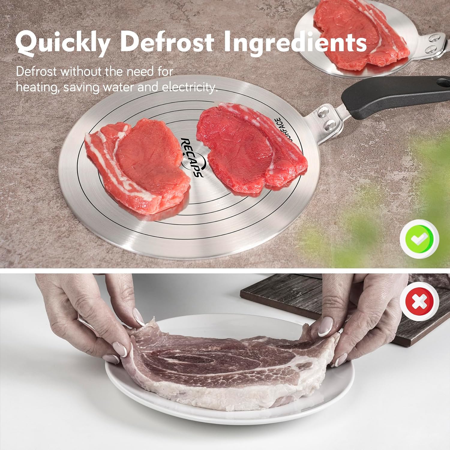 • Easy To Clean: RECAPS stainless steel induction adapter plate is designed with an easy-to-clean surface that prevents dirt and food residue while using an anti-fingerprint coating that reduces fingerprints and grease.(Cleaning with clear water and cleanser essence after the temperature of the heat conduction plate is dissipated)