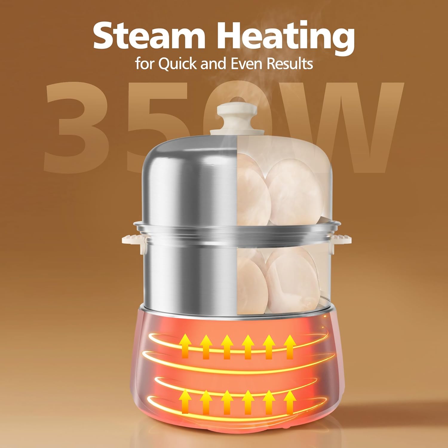 Hard Boiled Egg Cooker - CACHOO 14-Egg Rapid Stainless Steel Egg Boiler with 30-Min Timer & Auto Shut Off, Compact Electric Vegetable Steamer for Cooking, Dishwasher Safe, Beige
