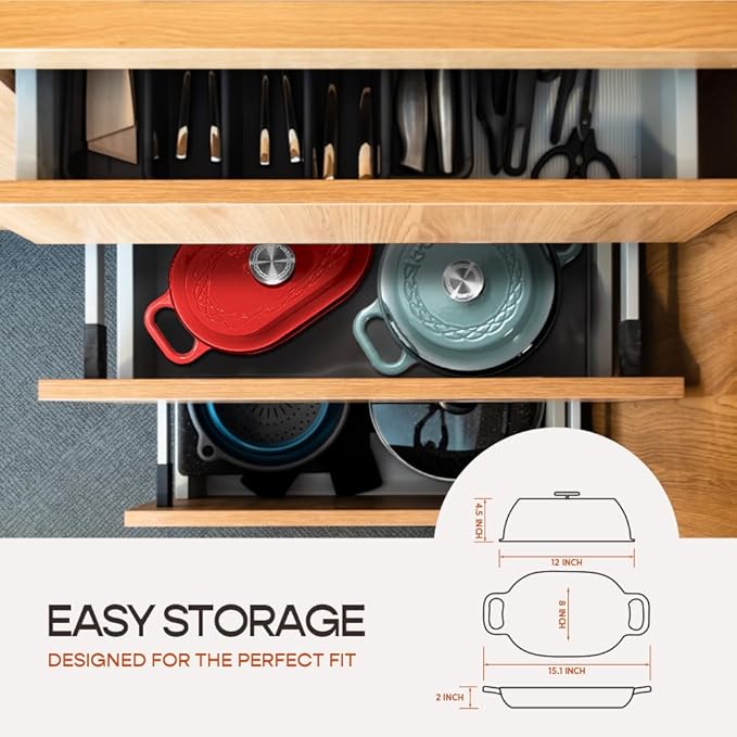 • PREMIUM CONSTRUCTION: Crafted with triple-layered enameled cast iron, this loaf pan dutch oven combines superior heat distribution with lasting durability. The cast iron dutch oven premium enamel coating prevents sticking while maintaining consistent temperatures throughout the baking process. The oval dutch oven pot with lid shape and carefully calculated dimensions provides optimal space for dough expansion and crust formation.
