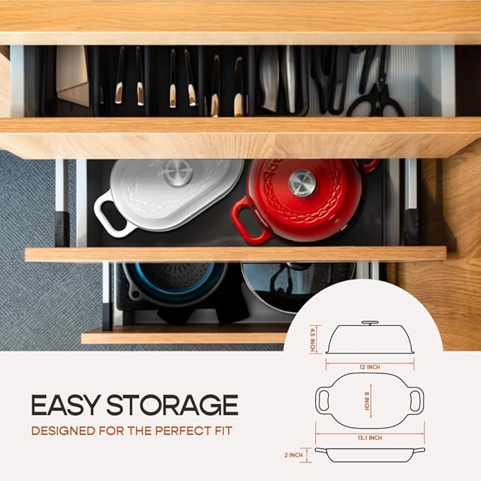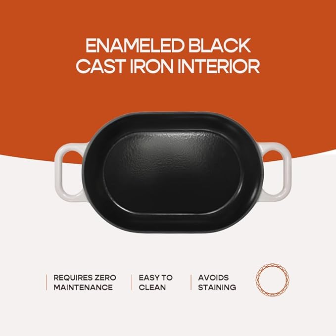 • PREMIUM CONSTRUCTION: Crafted with triple-layered enameled cast iron, this loaf pan dutch oven combines superior heat distribution with lasting durability. The cast iron dutch oven premium enamel coating prevents sticking while maintaining consistent temperatures throughout the baking process. The oval dutch oven pot with lid shape and carefully calculated dimensions provides optimal space for dough expansion and crust formation.