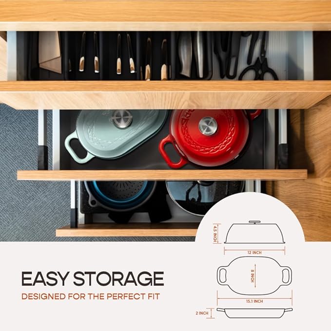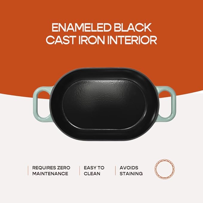 • PREMIUM CONSTRUCTION: Crafted with triple-layered enameled cast iron, this loaf pan dutch oven combines superior heat distribution with lasting durability. The cast iron dutch oven premium enamel coating prevents sticking while maintaining consistent temperatures throughout the baking process. The oval dutch oven pot with lid shape and carefully calculated dimensions provides optimal space for dough expansion and crust formation.