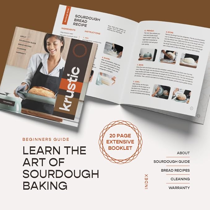 • PERFECT BAKING: Krustic professional dutch oven for bread baking features an innovative dome design that creates optimal steam circulation, helping your sourdough to achieve the perfect rise and golden crust every time. The specially engineered with 5.5-quart capacity and precise temperature control make this cast iron cookware essential for both novice bakers and seasoned professionals.
