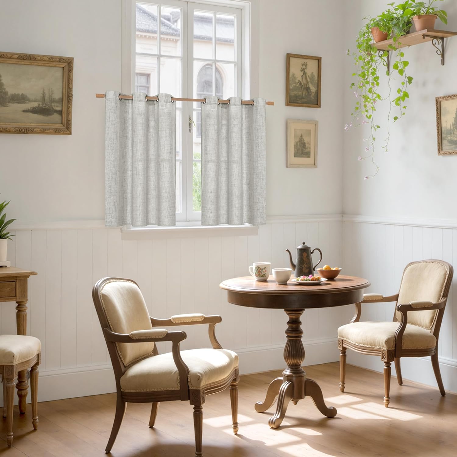 YoungsTex Light Grey Linen Curtains for Kitchen Window 40 Inch Length, Light Filtering Semi Sheer Short Drapes with Bronze Grommet Privacy for Bedroom Bathroom Cafe, 42 x 40 Inch, 2 Panels