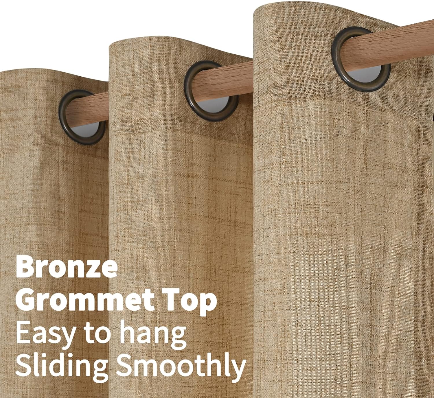 YoungsTex Burlap Toffee Curtains 68 Inch Length for Living Room, Linen Sheer Drapes Taupe Netural with Bronze Grommet Privacy for Bedroom Rustic Farmhouse, 52 x 68 Inch, 2 Panels