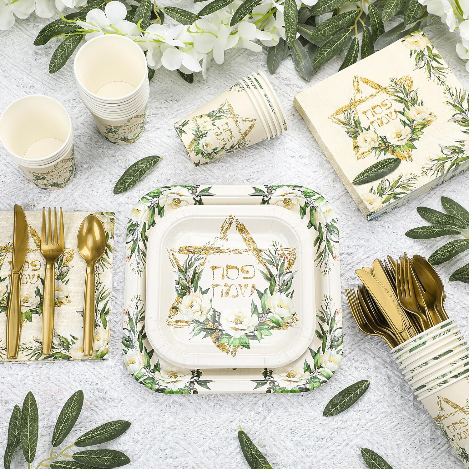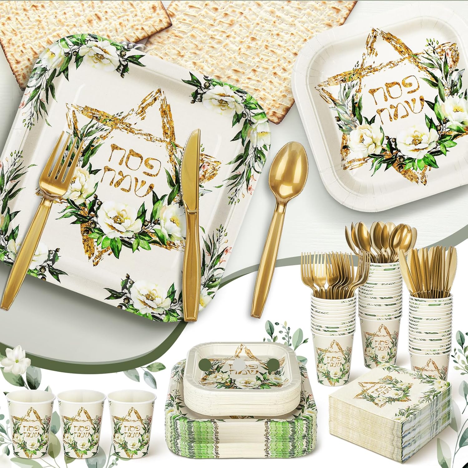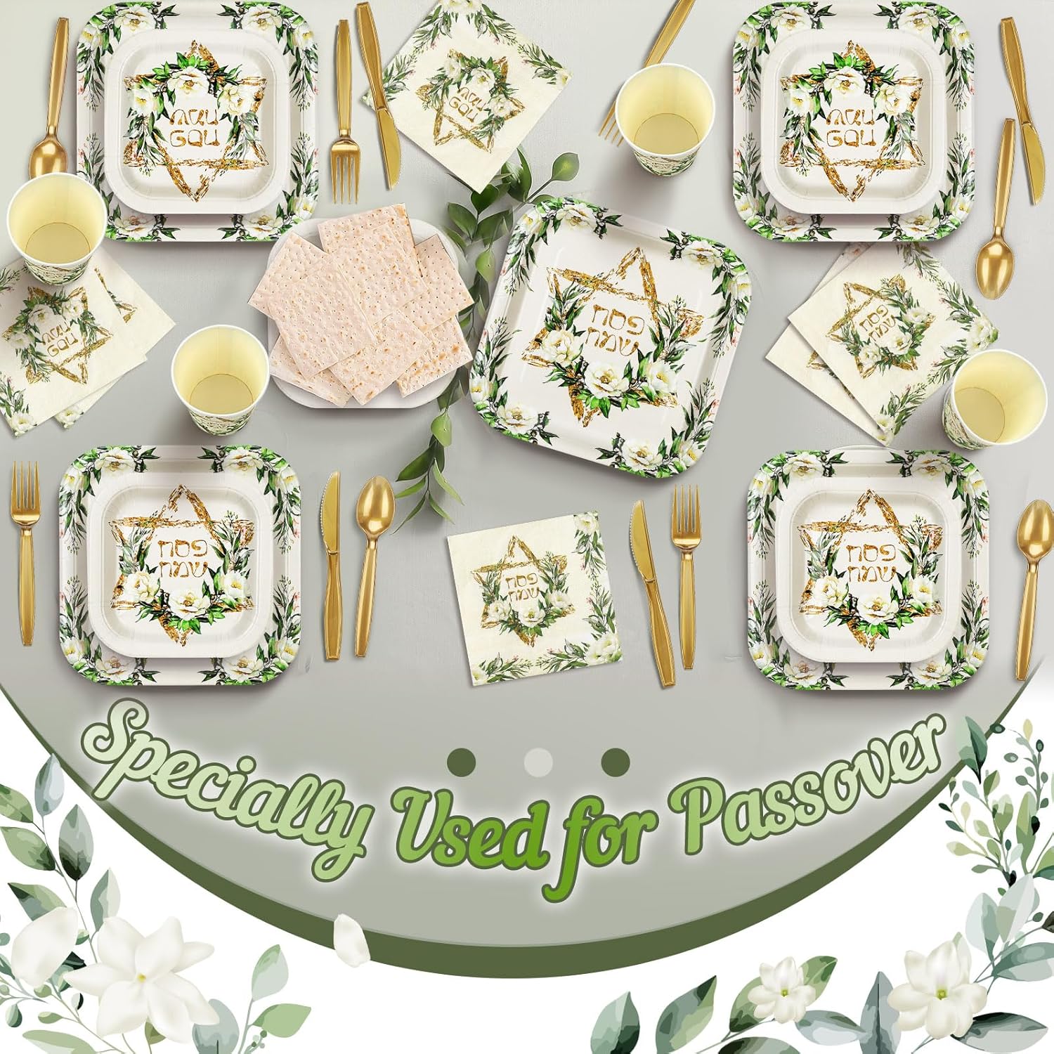 • Quality Material: Passover paper plates, napkins and cups are made of paper, sturdy enough to hold various food; The Passover napkins are soft and absorbent, suitable for Passover party decorations; The knives, forks and spoons are made of durable plastic material