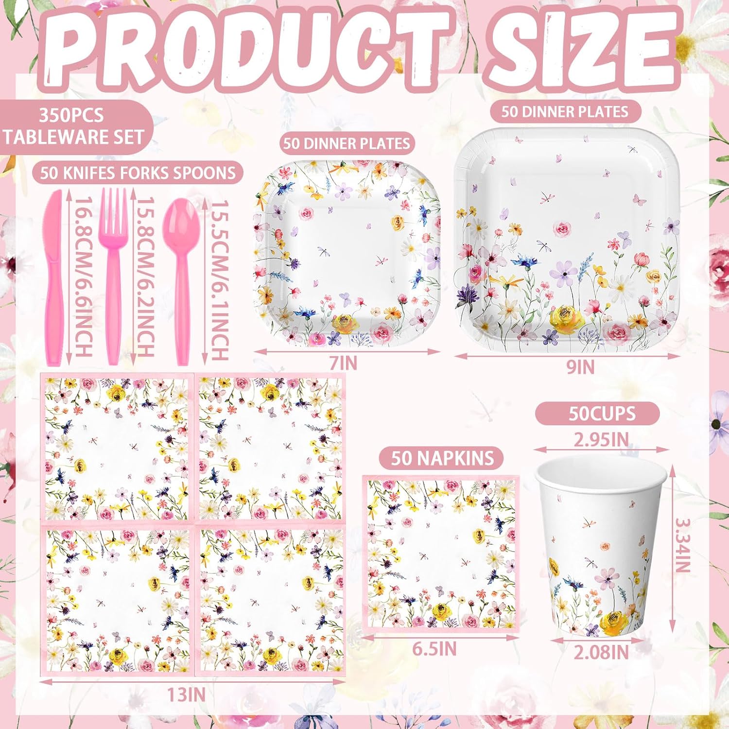 • Wildflower Party Supplies for 50 Guests: the 350 pieces of wildflower party supplies contain 50 pieces of 9 inch wildflower plates, 50 pieces of 7 inch wildflower plates, 50 pieces of napkins, 50 pieces of paper cups, 50 pieces of knives, 50 pieces of forks, 50 pieces of spoons, the rich items and quantity will allow you to serve 50 guests at one time
