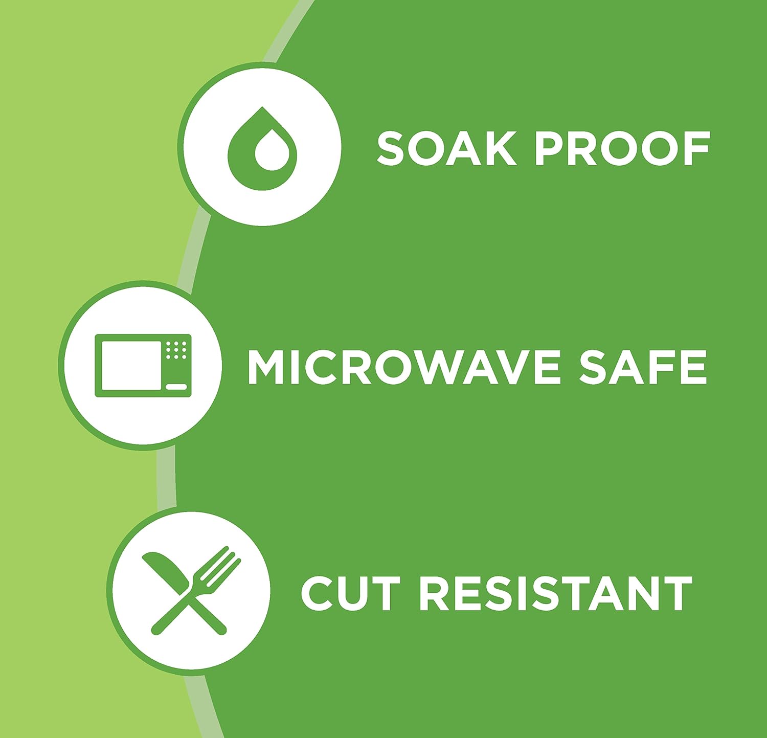 • Microwave-safe, soak proof, and cut resistant