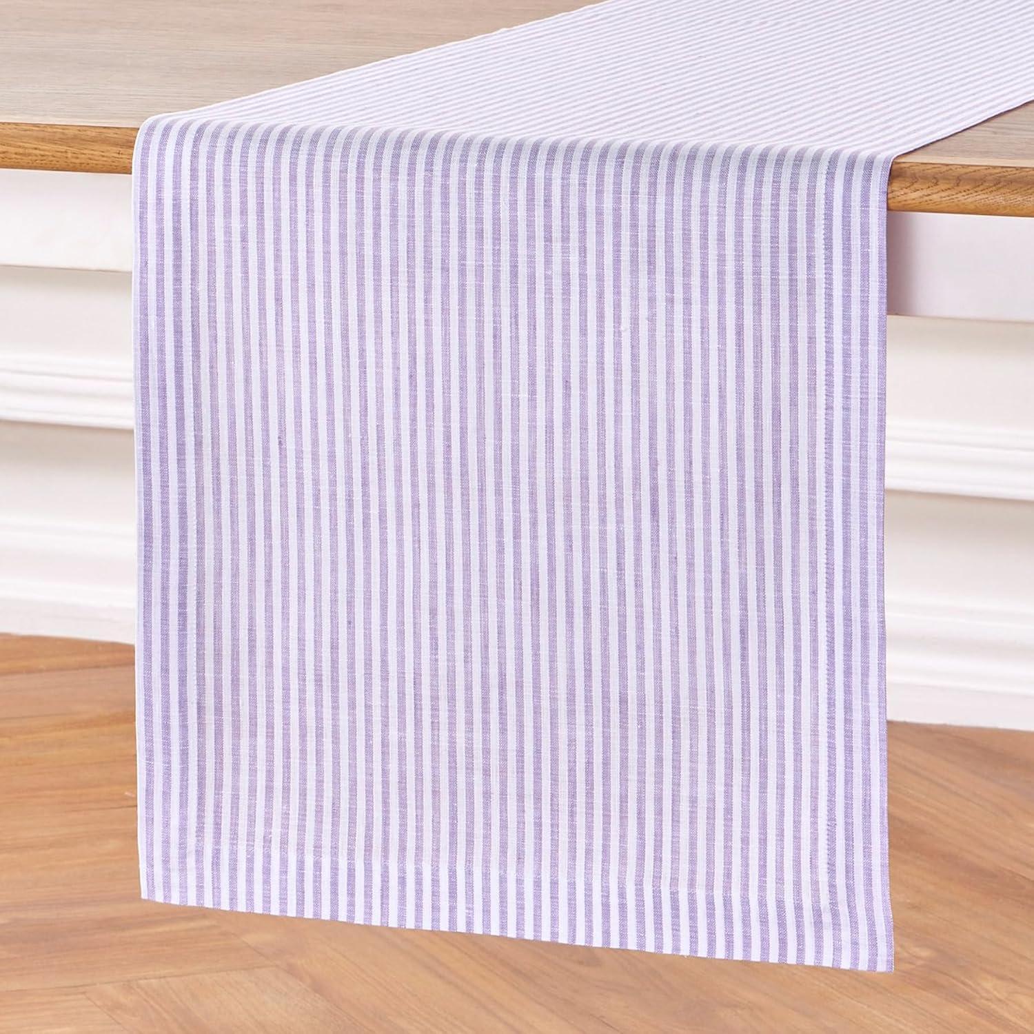• 𝗖𝗼𝗺𝗽𝗼𝘀𝗶𝘁𝗶𝗼𝗻 𝗮𝗻𝗱 𝗖𝗿𝗮𝗳𝘁𝘀𝗺𝗮𝗻𝘀𝗵𝗶𝗽 : 100% Pure European Flax Linen Lavender and White Thanksgiving Table Runner - 𝗡𝗮𝗿𝗿𝗼𝘄 𝗦𝘁𝗿𝗶𝗽𝗲 | Handcrafted By Skilled Artisans.