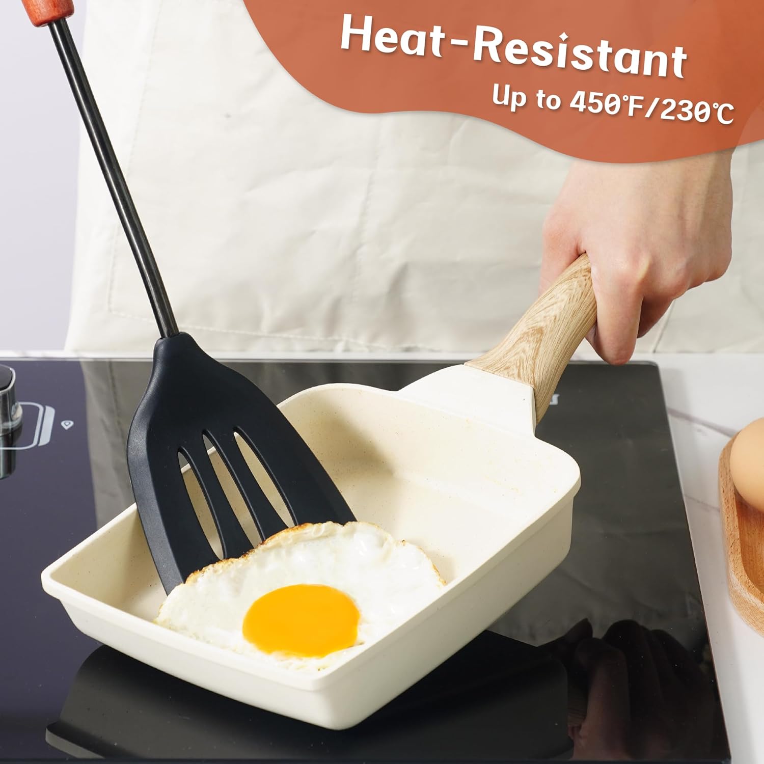 • Easy to clean silicone spatula : Black silicone will not leave food grease ; round hanging hole also makes it easy to dry and hang