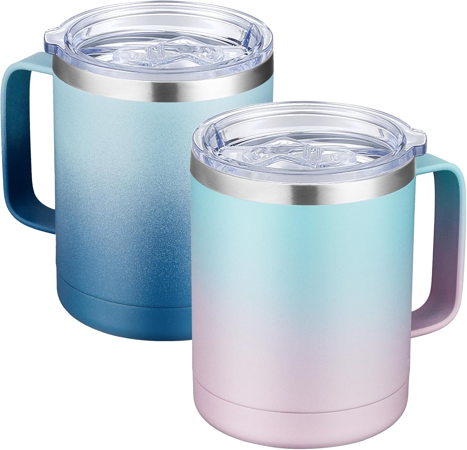 MEWAY 12oz Coffee Mug With Handle 2 Pack Bulk,Stainless Steel Insulated Travel Tumblers With Sliding Lid,Double Wall Vacuum Camping Cup for Hot & Cold Drinks Tea (Bubble Gum&Blue Waves,Set of 2)