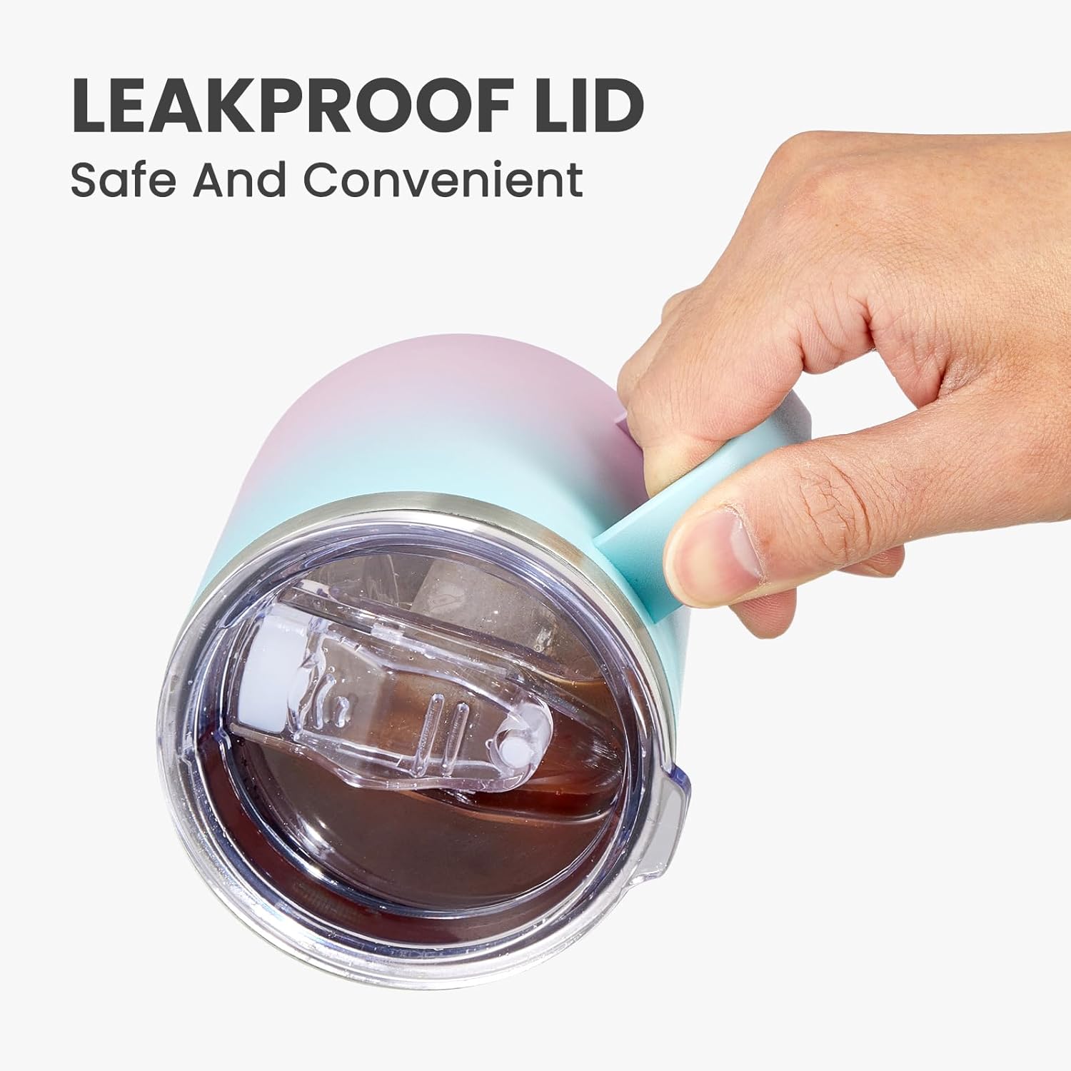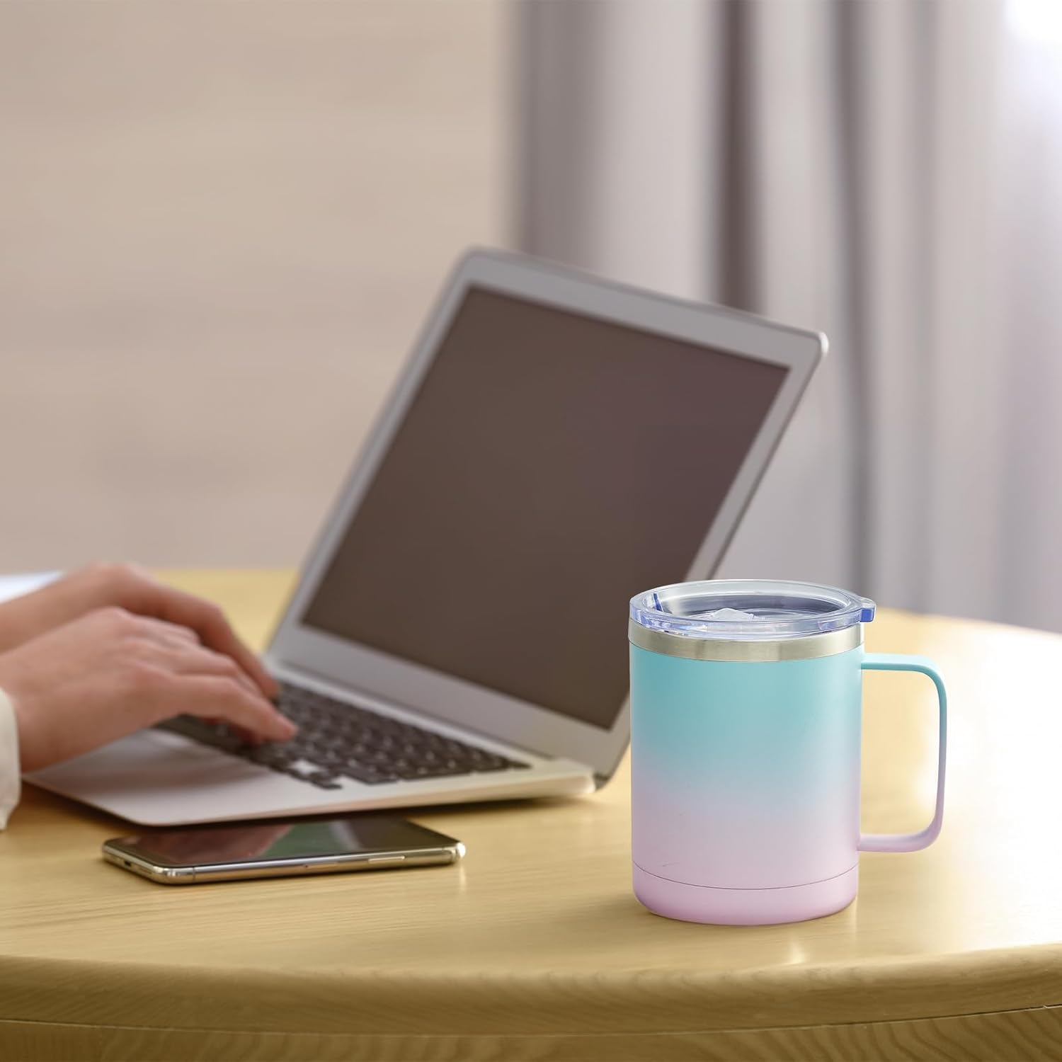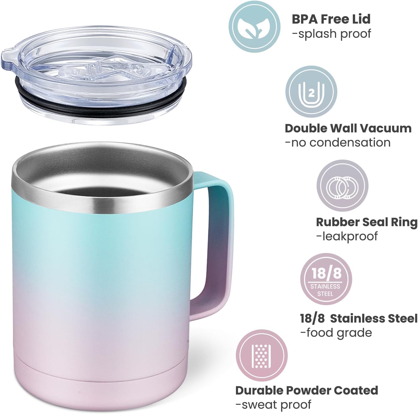 MEWAY 12oz Coffee Mug With Handle and Sliding Lid,Stainless Steel Travel Tumbler Cup with Handle,Double Wall Vacuum Insulated Camping Cup for Hot & Cold Drinks Tea (Bubble Gum,Set of 1)