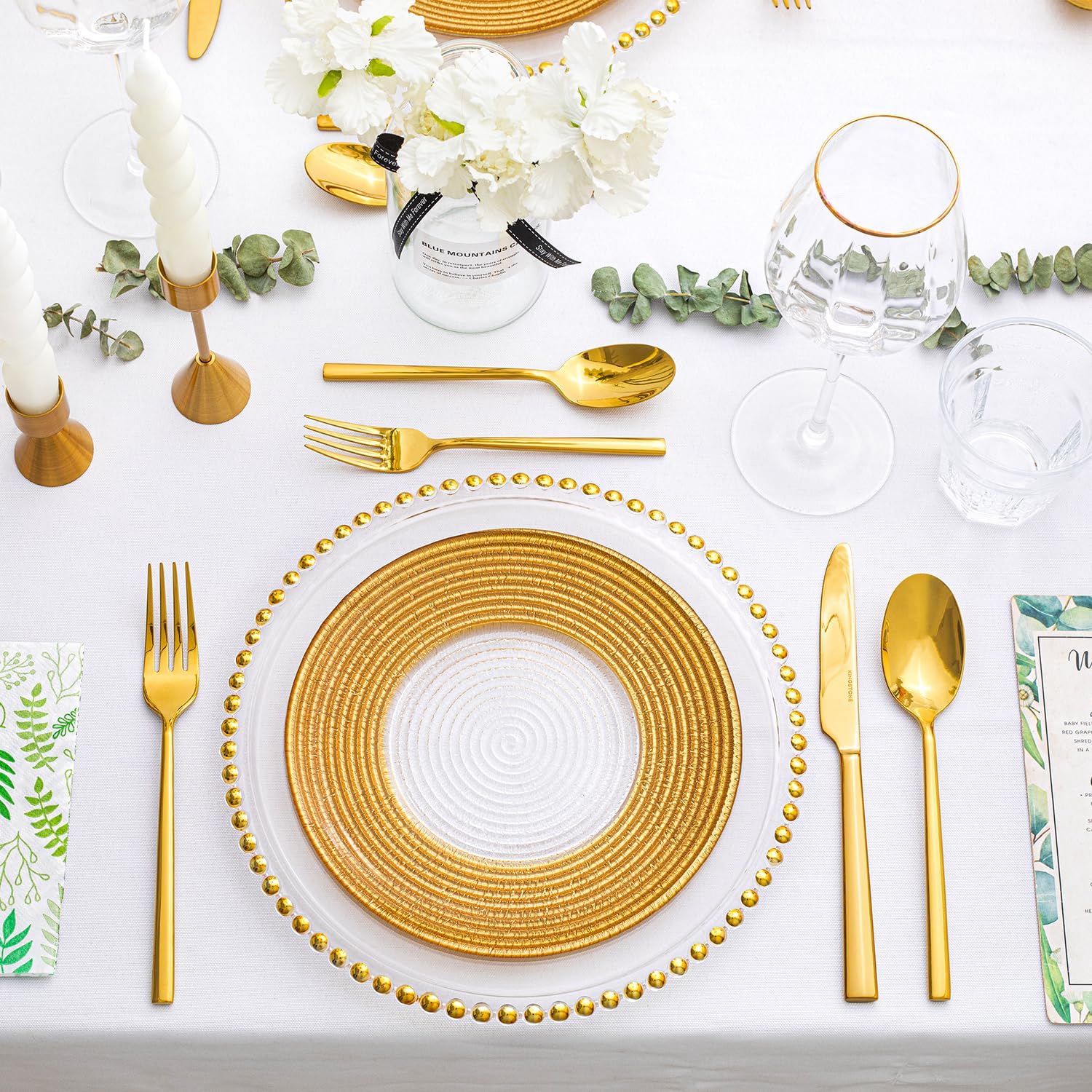 KINGSTONE Gold Silverware Set, 40-Piece Forged Flatware Set Cutlery Set Premium Stainless Steel, Service for 8, for Kitchen, Home, Wedding, Party, Mirror Polished Dishwasher Safe