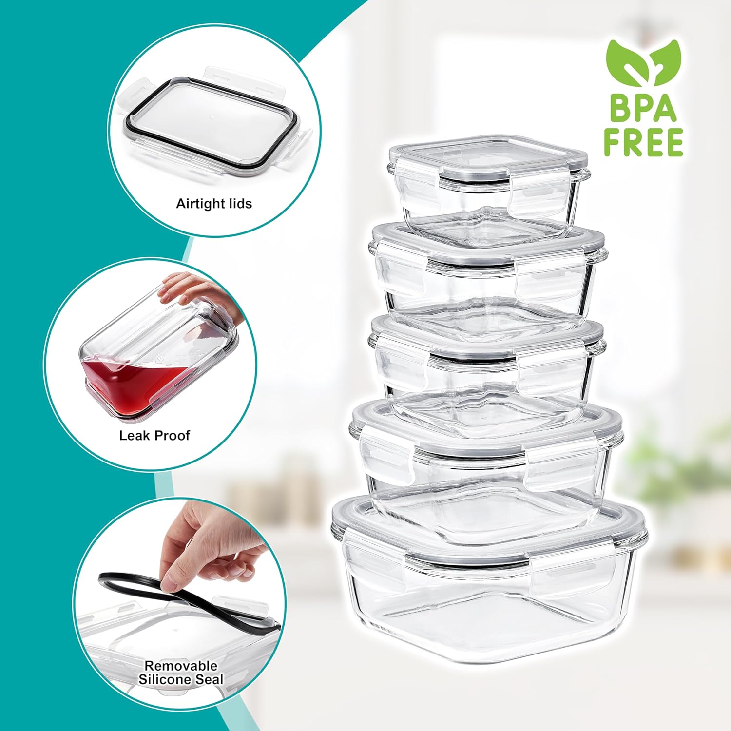 • Glass Meal Prep Containers with Lids: These airtight food storage containers are ideal for storing prepped meals, leftovers, chopped fruits and veggies, snacks, and more making kitchen storage convenient. Use as meal prep lunch box, salad jars with lids, meal prep glass containers with lids, baby food storage containers, pet food storage containers, freezer containers for food storage, meal prep containers, glass collapsible food storage containers, or oven safe glass meal prep containers.