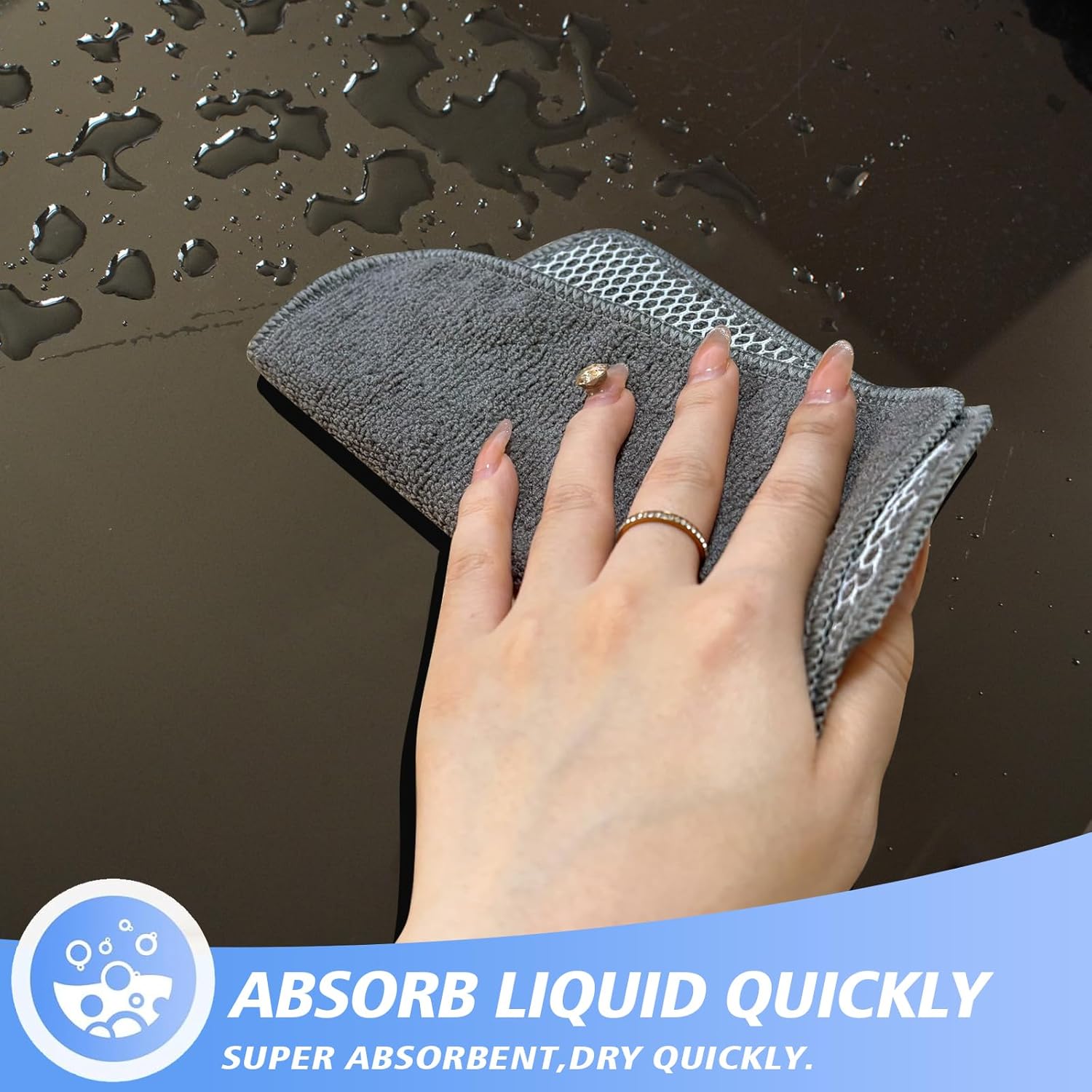 • ABSORB LIQUID QUICKLY WASHCLOTH FOR KITCHEN: These dish cloths are super absorbent, dry quickly, and any stains or grime from wiping counters washes right out with warm sopy water. Works well for buffing hard water spots from wet dishes