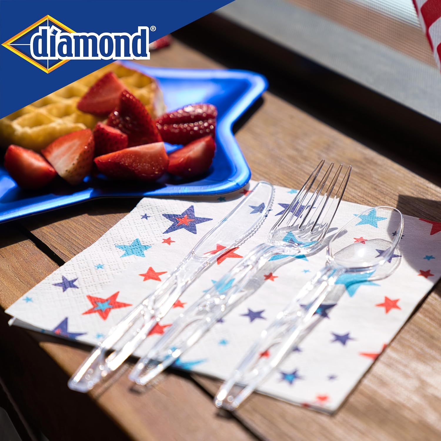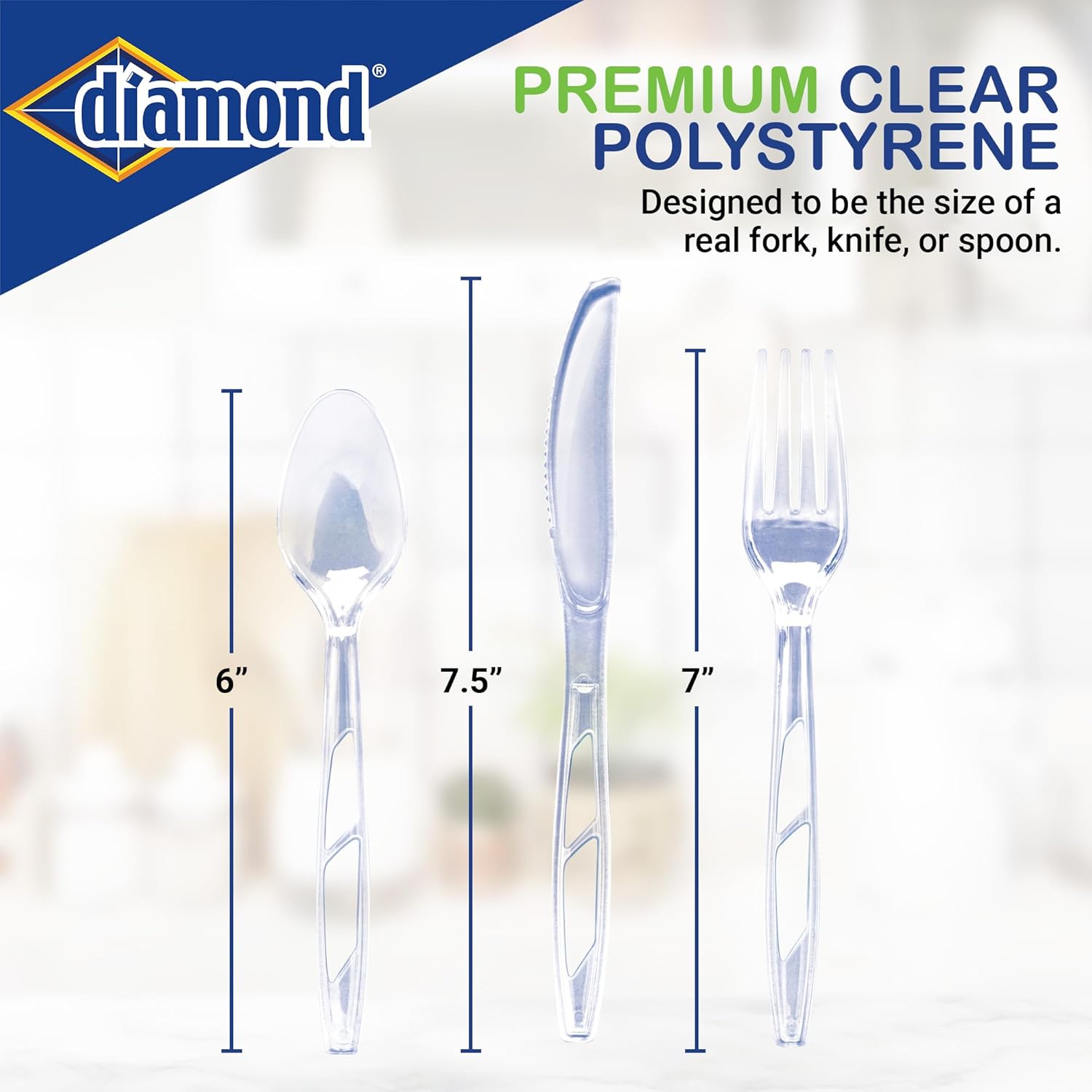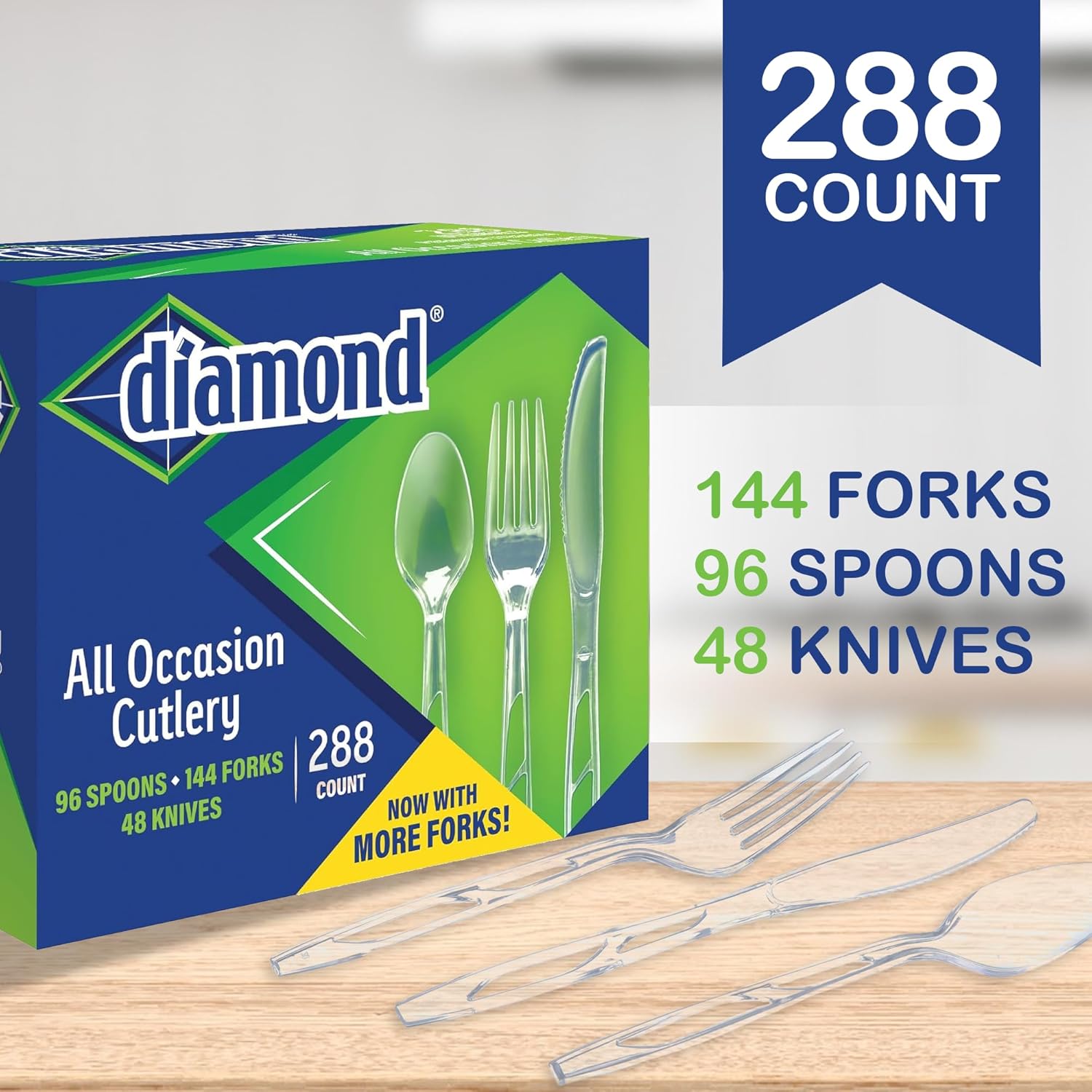 Diamond® Premium Clear Plastic Cutlery Set – 288 Count (144 Forks, 96 Spoons, 48 Knives), Disposable Full-Size Utensils, Party & Everyday Use