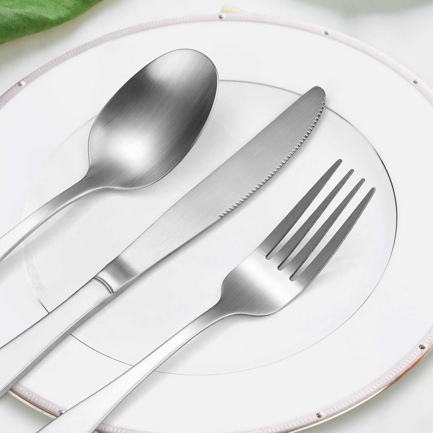 • DISHWASHER SAFE: Elevate your dining experience with this set of 30 matte flatware pieces made of durable stainless steel. Dishwasher safe for easy cleaning and long-lasting use.