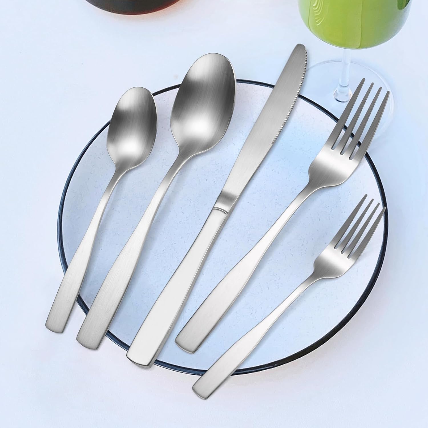 • Modern Square Handle: Elevate your dining experience with this sleek and stylish silver matte silverware set featuring modern square handles. Perfect for adding a contemporary touch to any table setting.