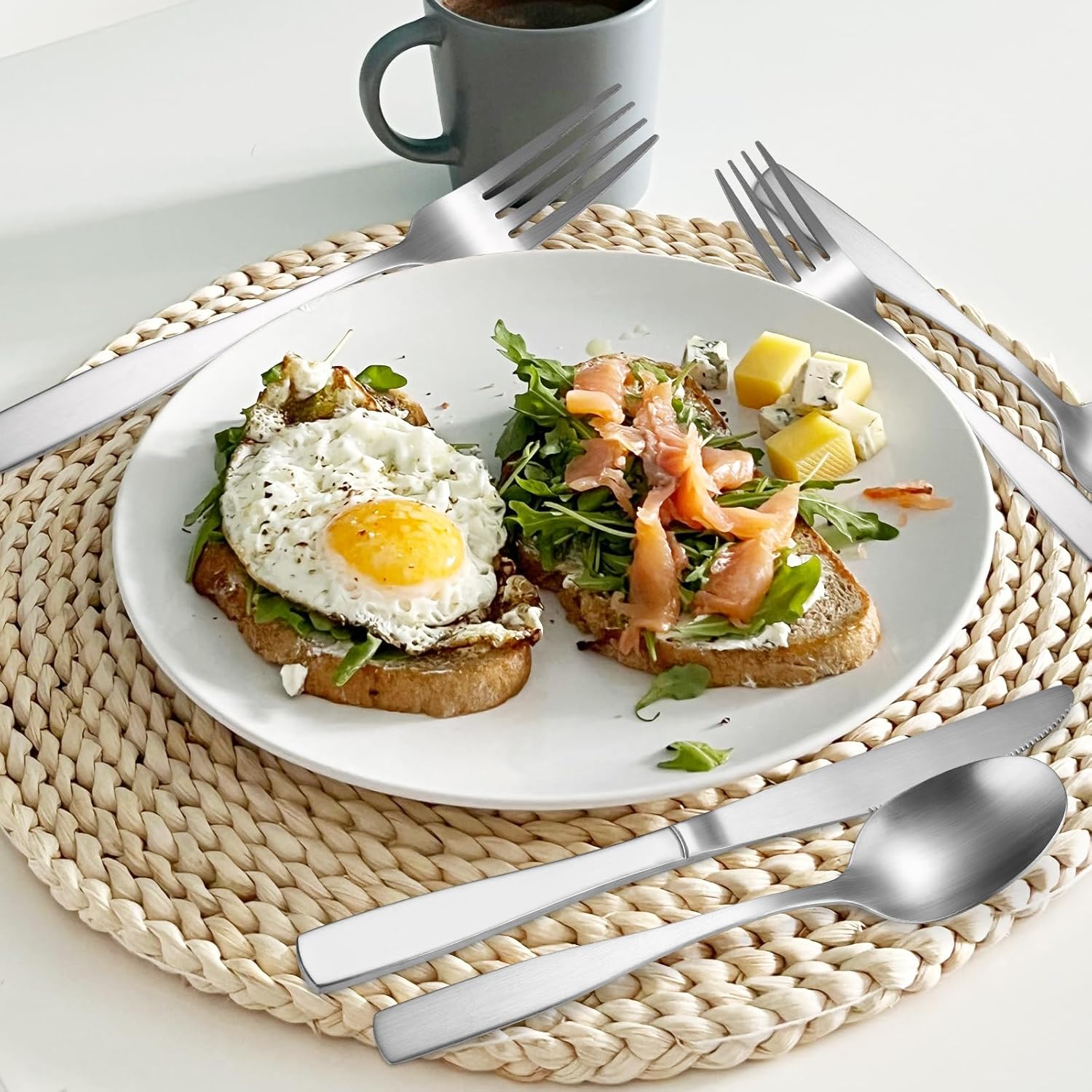 • Quality Stainless Steel: Enhance your dining experience with this set of 30 pieces of matte flatware made from high-quality stainless steel. Each piece is sleek, durable, and easy to clean, designed specifically for everyday use or special occasions.