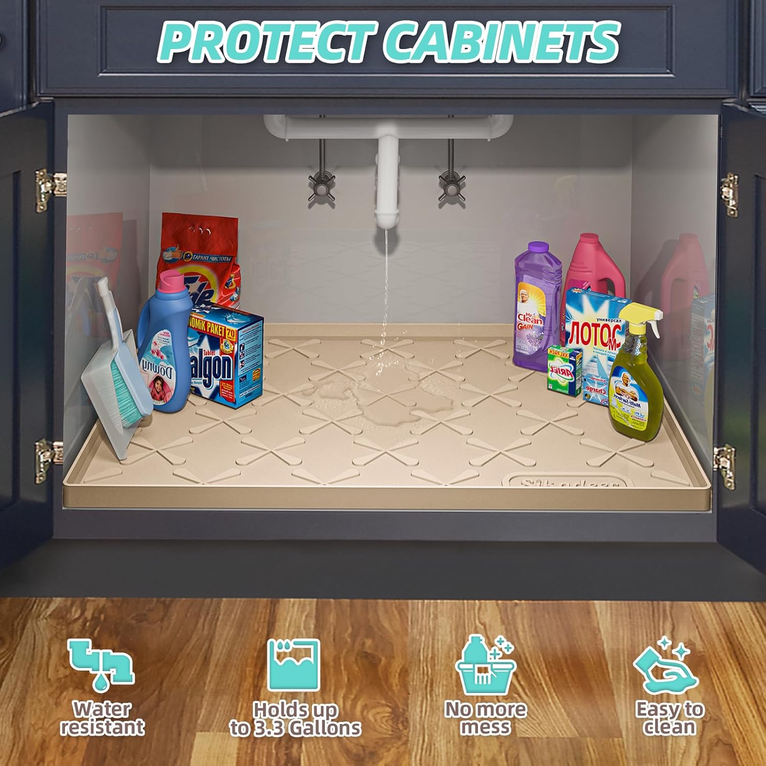 SIKADEER 31" x 22" Under Sink Mat Waterproof, Silicone Mat Kitchen Drawer Shelf and Cabinet Liner, Sink Protector for Kitchen Organizers and Storage, Boot Tray Pet Food Mats